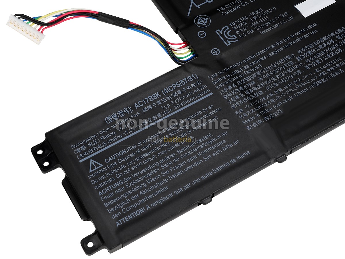 Con la copia 1: 1 in base alla dimensione originale della batteria originale, la batteria Acer AC17B8K(4ICP5/57/81) sostitutiva è compatibile al 100% con la batteria originale.