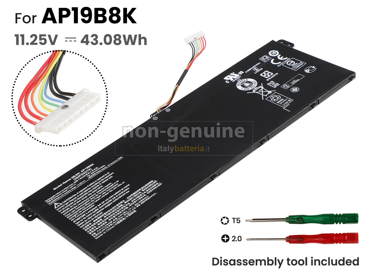 La batteria sostitutiva Acer AP19B8K è progettata in scala 1:1 rispetto alla batteria originale, assicurando il 100% di compatibilità in termini di forma, dimensioni e prestazioni.