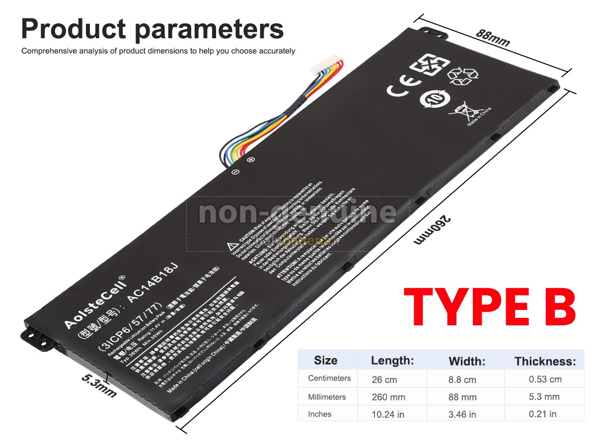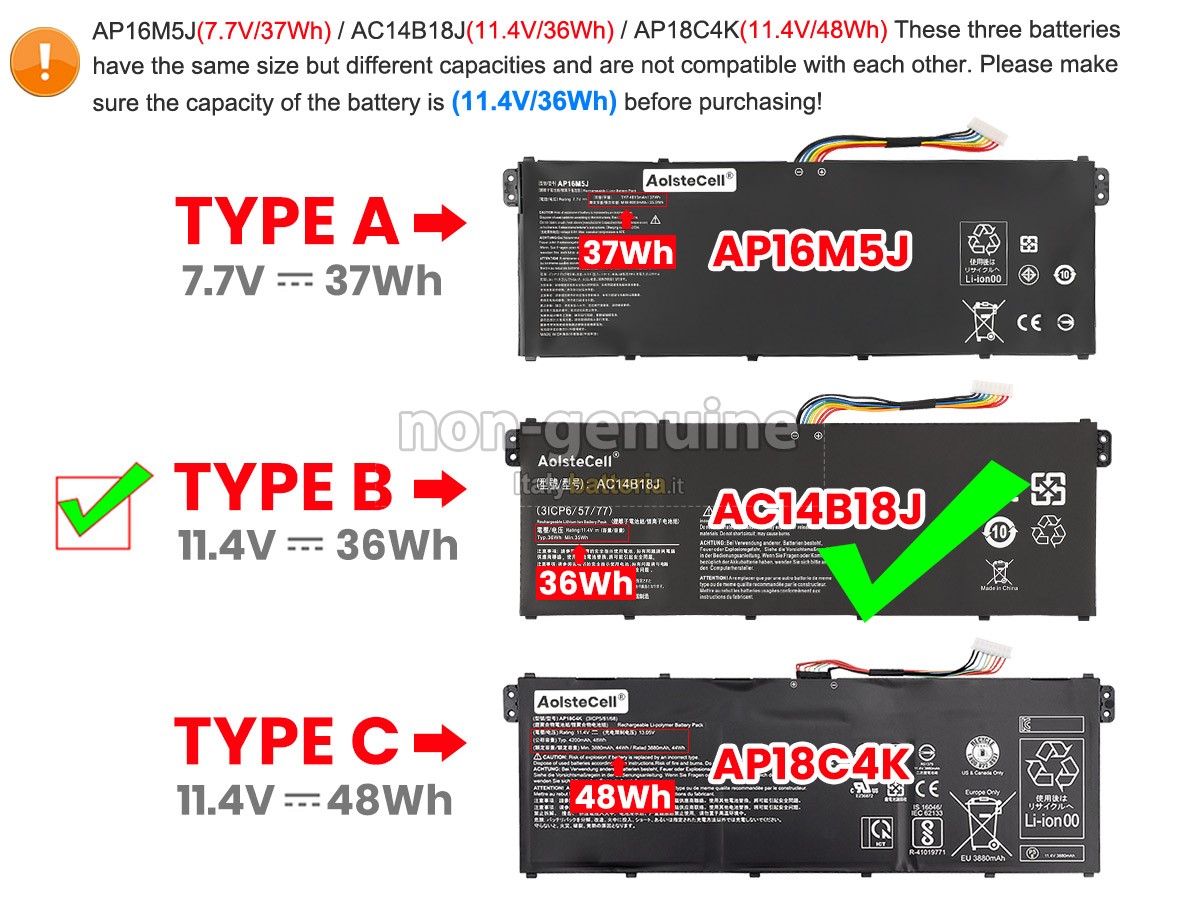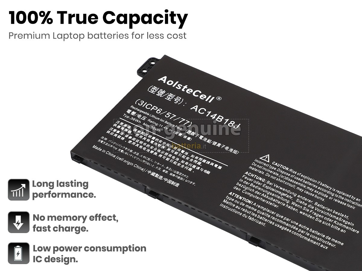 Con la copia 1: 1 in base alla dimensione originale della batteria originale, la batteria Acer Aspire 3 A315-54K-39P8 sostitutiva è compatibile al 100% con la batteria originale.