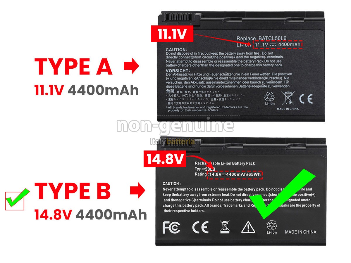 Con la copia 1: 1 in base alla dimensione originale della batteria originale, la batteria Acer BT.00403.001 sostitutiva è compatibile al 100% con la batteria originale.