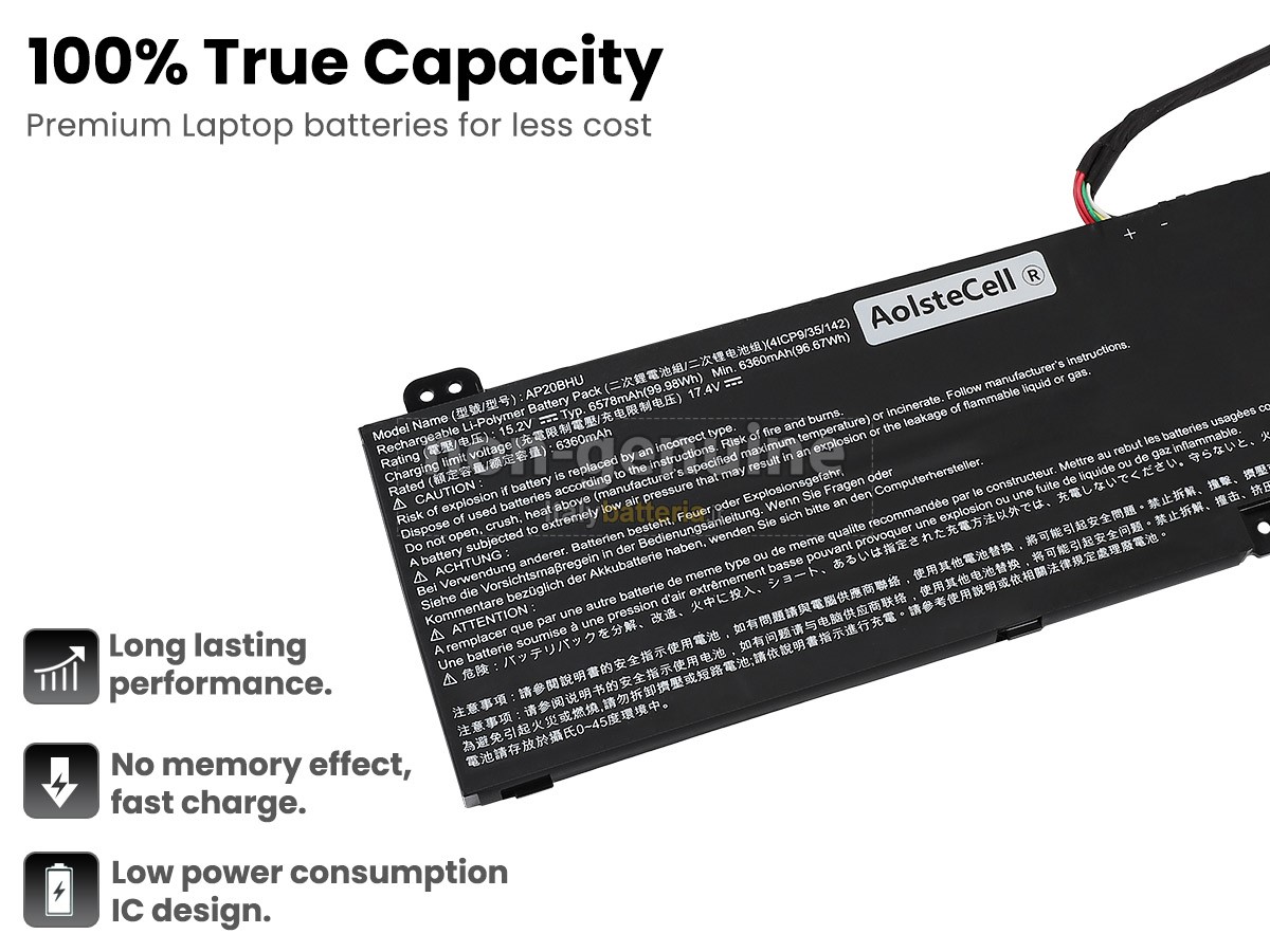 Con la copia 1: 1 in base alla dimensione originale della batteria originale, la batteria Acer CONCEPTD 5 CN516-72G-70DF sostitutiva è compatibile al 100% con la batteria originale.