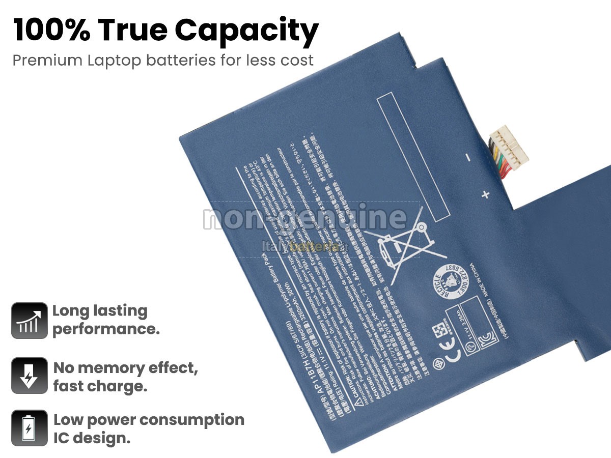 Con la copia 1: 1 in base alla dimensione originale della batteria originale, la batteria Acer Iconia W500 sostitutiva è compatibile al 100% con la batteria originale.