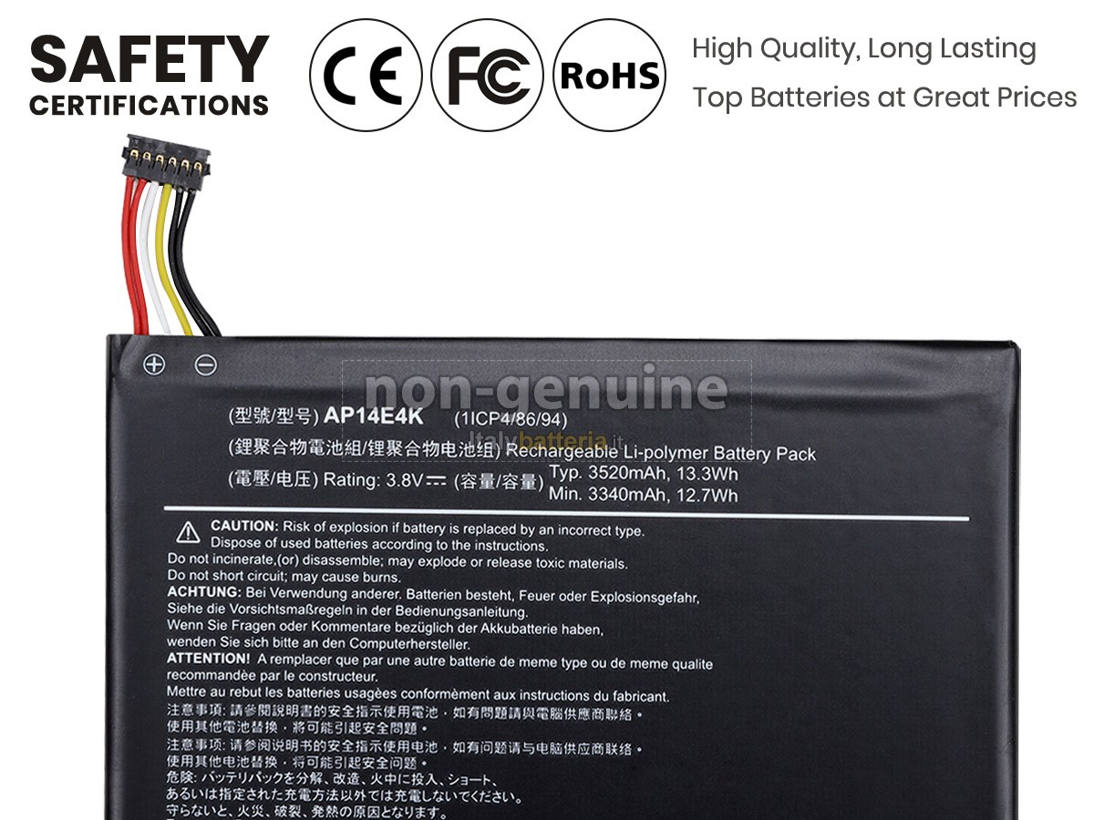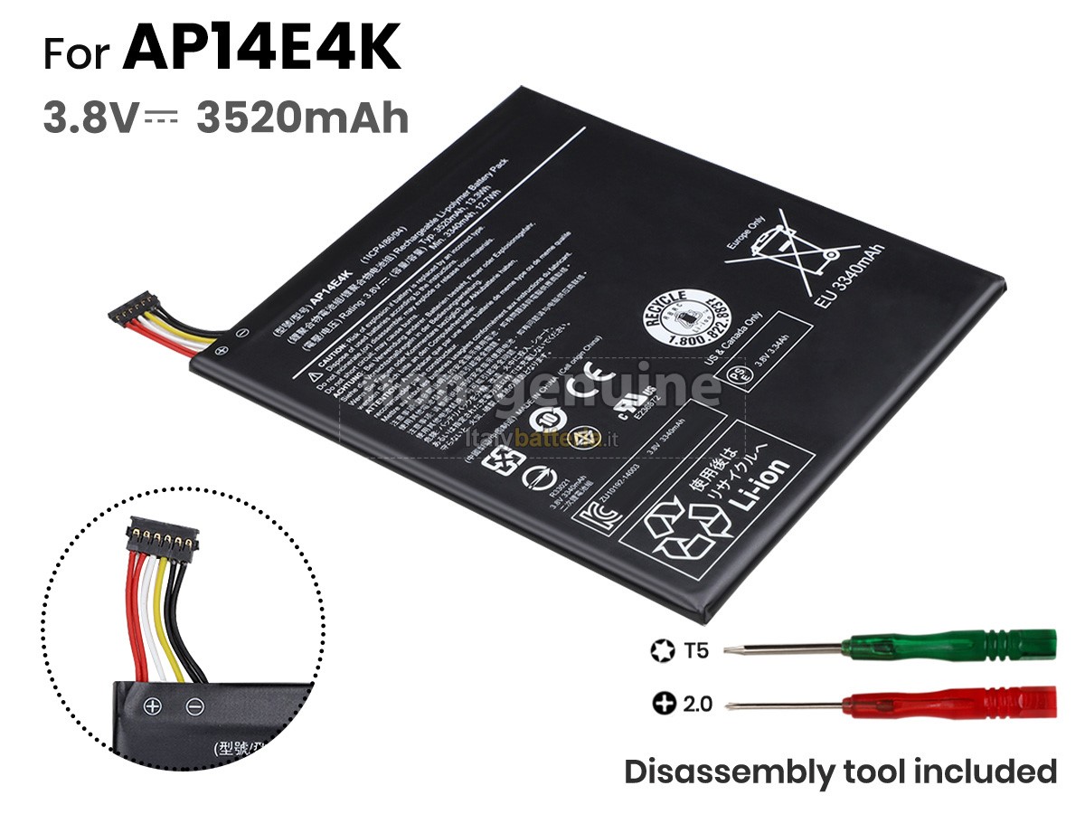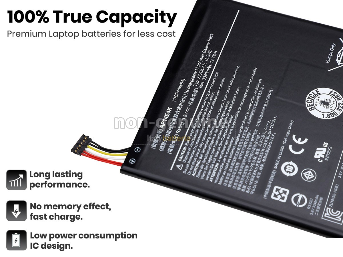 Con la copia 1: 1 in base alla dimensione originale della batteria originale, la batteria Acer KT00104001 sostitutiva è compatibile al 100% con la batteria originale.