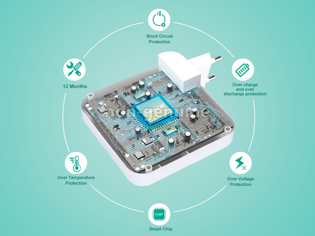 Dotato di un chip di ultima generazione, l'adattatore Apple 96W 20.5V 4.7A USBC TO MAGSAFE 3 gestisce il controllo della temperatura in modo intelligente, offrendo protezioni multiple contro sovraccarico, surriscaldamento e cortocircuiti. Questo assicura un'alimentazione stabile e sicura durante la ricarica, proteggendo la batteria da eventuali danni.