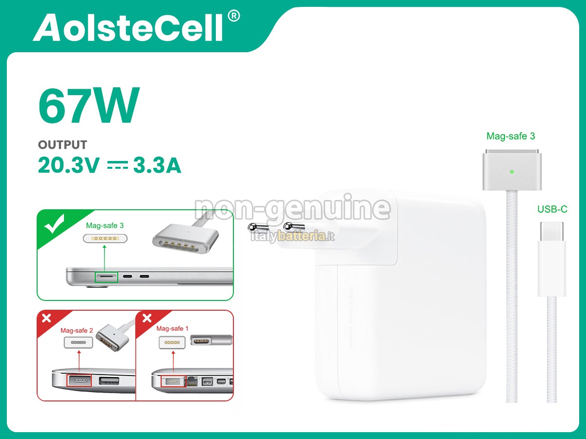 Testato rigorosamente e certificato conforme dalle autorità nazionali, il nostro adattatore per Apple A2442 EMC 3650 è una scelta sicura e affidabile, che ti permette di ricaricare il tuo dispositivo senza preoccupazioni.