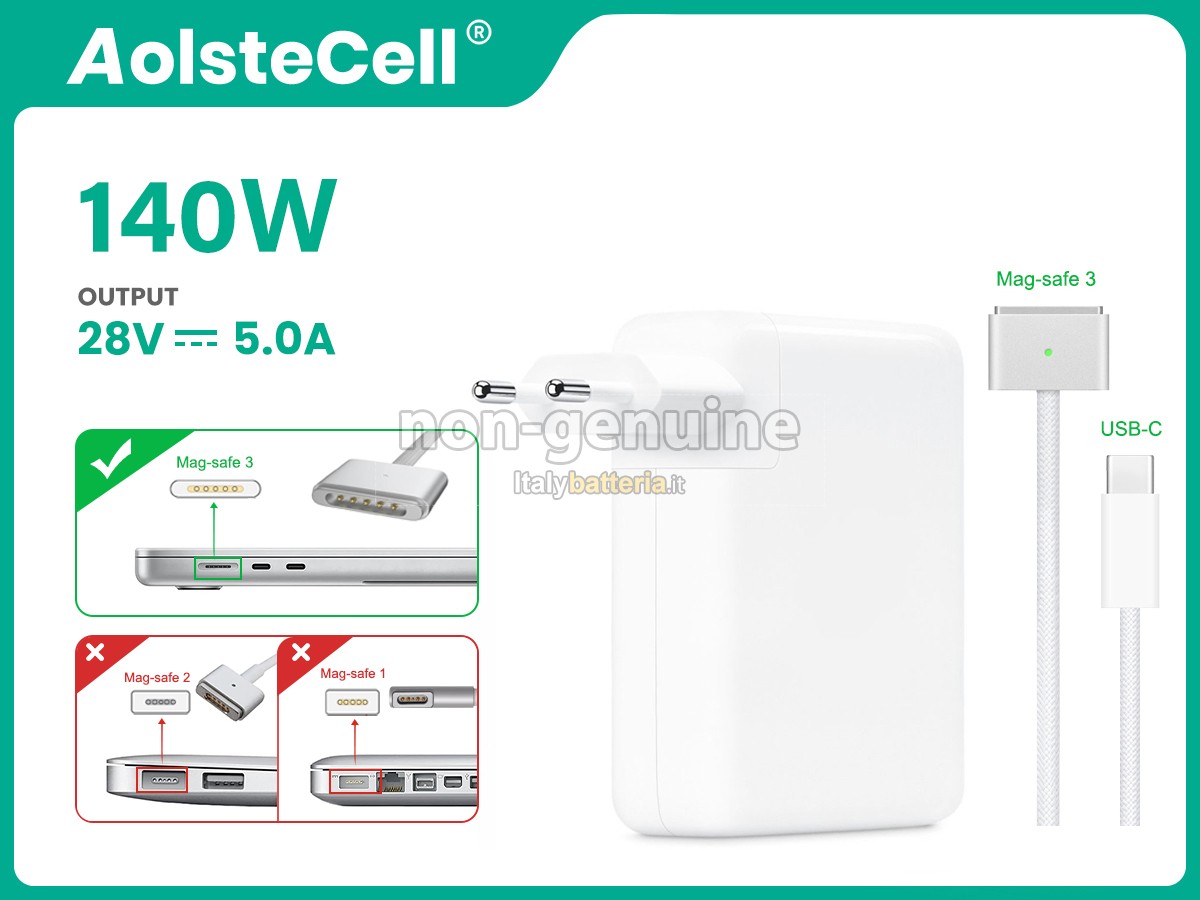 progettato appositamente per i dispositivi Apple A2485 EMC 3651, rispetta rigorosamente gli standard ufficiali di corrente, garantendo una ricarica sempre stabile ed efficiente. Realizzato con un involucro in plastica ABS+PC, offre eccezionali proprietà di resistenza al calore e agli urti, assicurando una protezione duratura per il tuo dispositivo. Il nostro obiettivo è garantire che ogni ricarica del tuo dispositivo Apple A2485 EMC 3651 rappresenti un'esperienza professionale e curata, rendendo l'uso quotidiano più sicuro e duraturo.