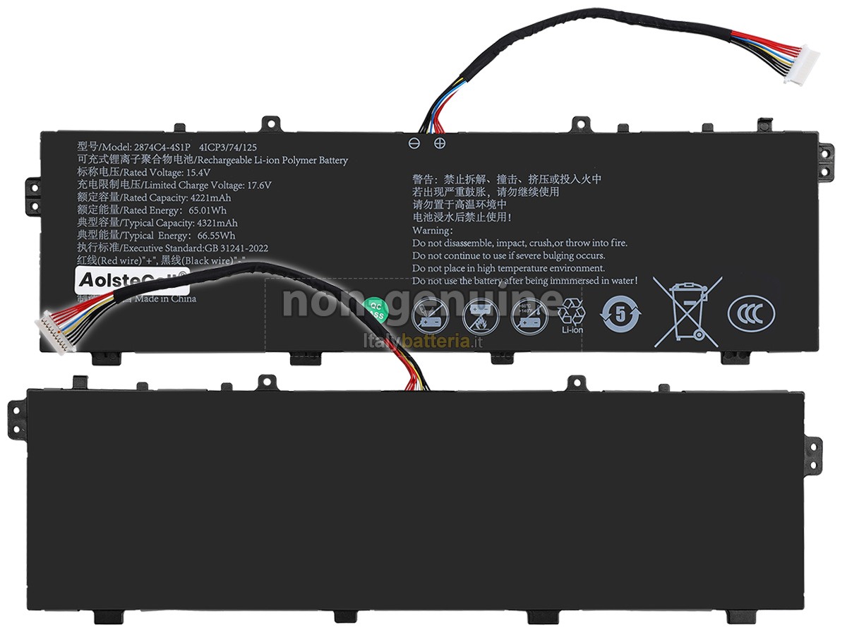 La batteria sostitutiva AolsteCell 2874C4-4S1P è progettata in scala 1:1 rispetto alla batteria originale, assicurando il 100% di compatibilità in termini di forma, dimensioni e prestazioni.