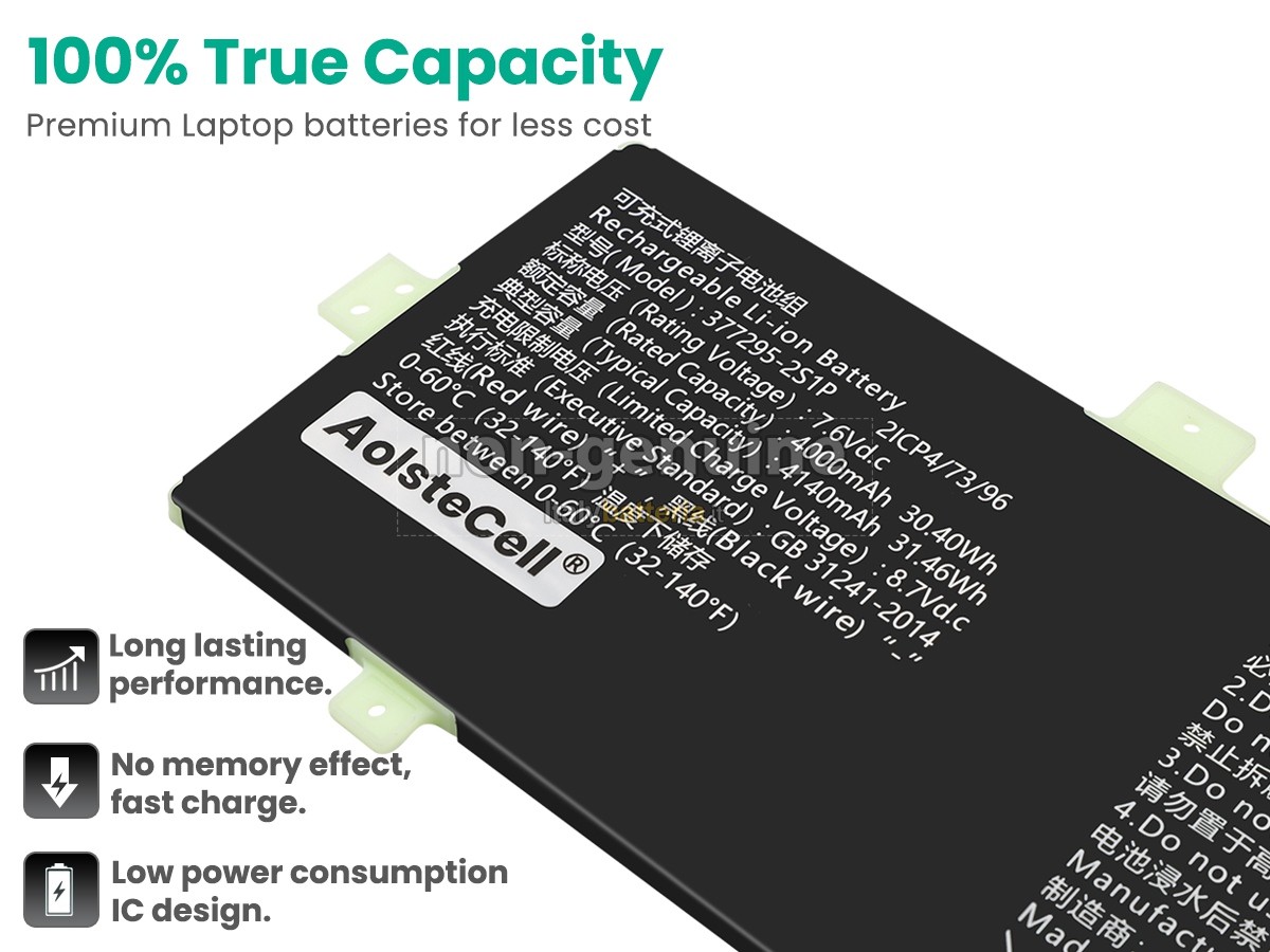 Con la copia 1: 1 in base alla dimensione originale della batteria originale, la batteria AolsteCell 377295-2S1P sostitutiva è compatibile al 100% con la batteria originale.