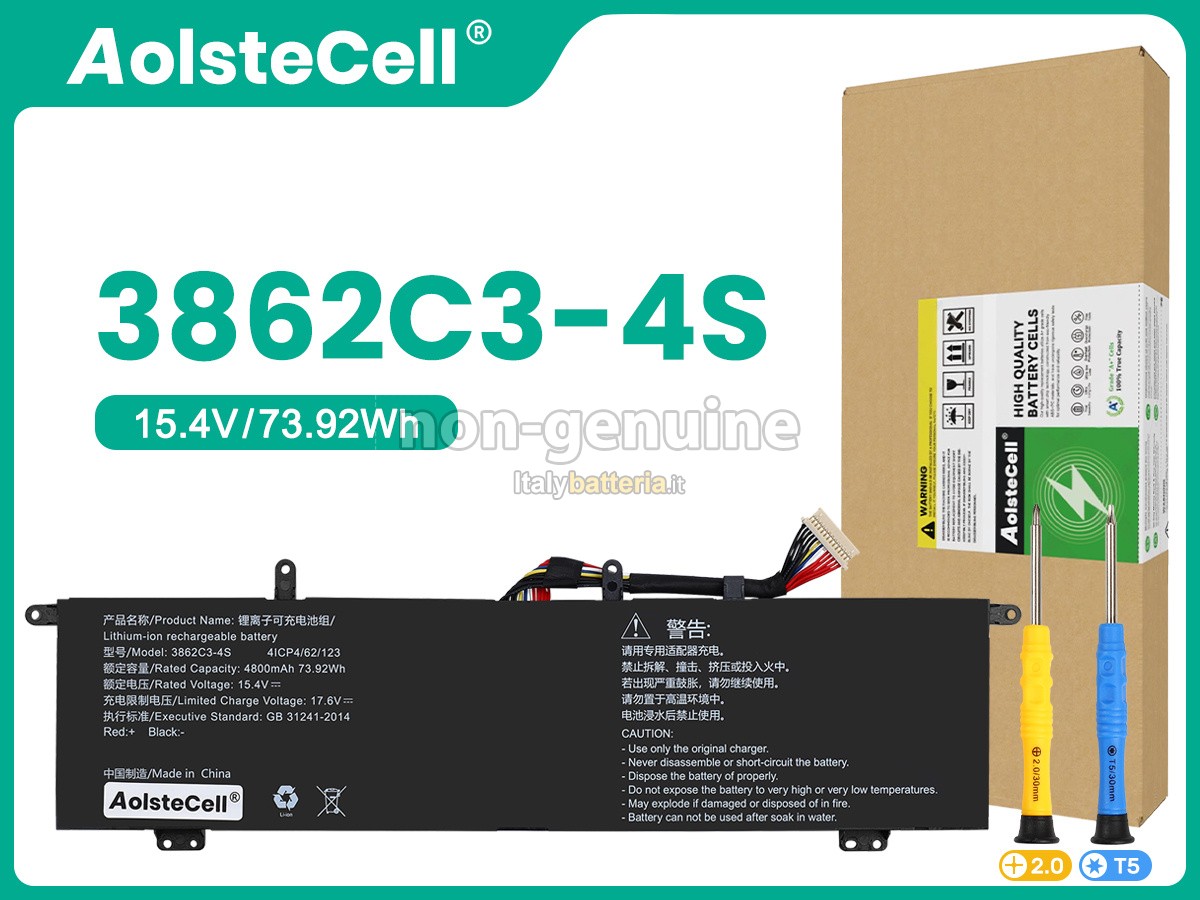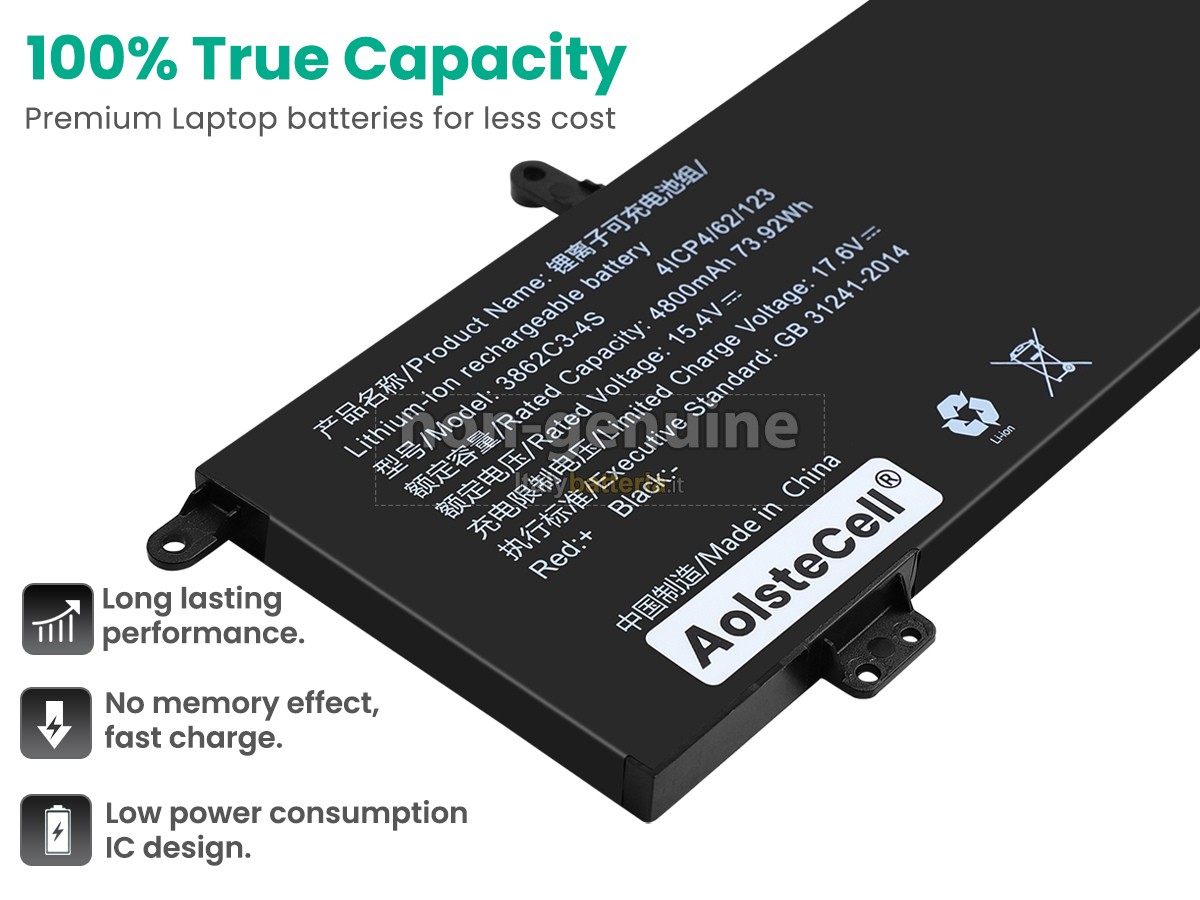 La batteria sostitutiva AolsteCell 3862C3-4S è progettata in scala 1:1 rispetto alla batteria originale, assicurando il 100% di compatibilità in termini di forma, dimensioni e prestazioni.