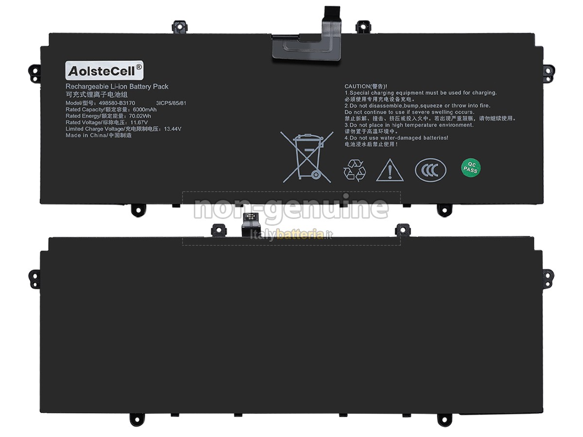 La batteria sostitutiva AolsteCell 498580-B3170 è progettata in scala 1:1 rispetto alla batteria originale, assicurando il 100% di compatibilità in termini di forma, dimensioni e prestazioni.