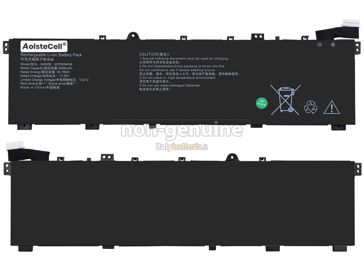 La batteria sostitutiva AolsteCell 549358 è progettata in scala 1:1 rispetto alla batteria originale, assicurando il 100% di compatibilità in termini di forma, dimensioni e prestazioni.