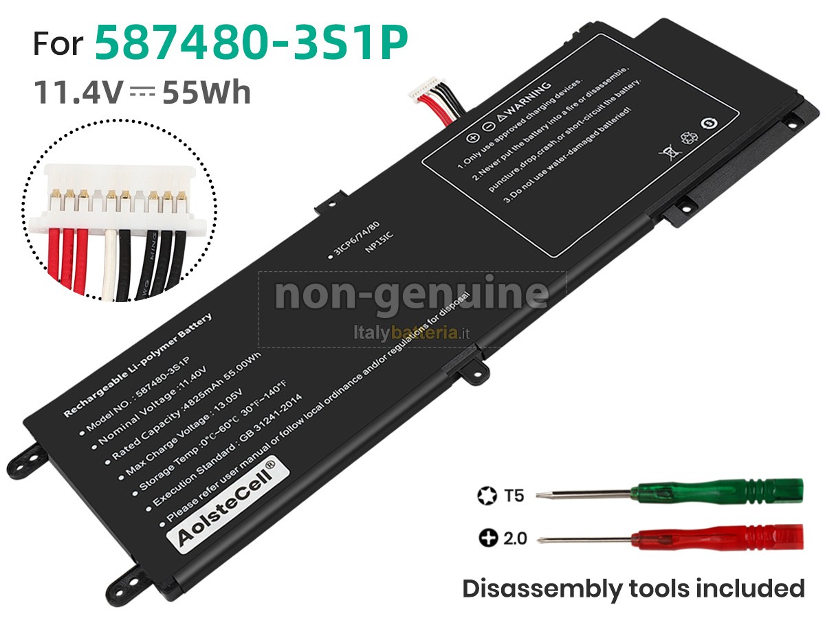 Con la copia 1: 1 in base alla dimensione originale della batteria originale, la batteria AolsteCell 587480-3S1P sostitutiva è compatibile al 100% con la batteria originale.