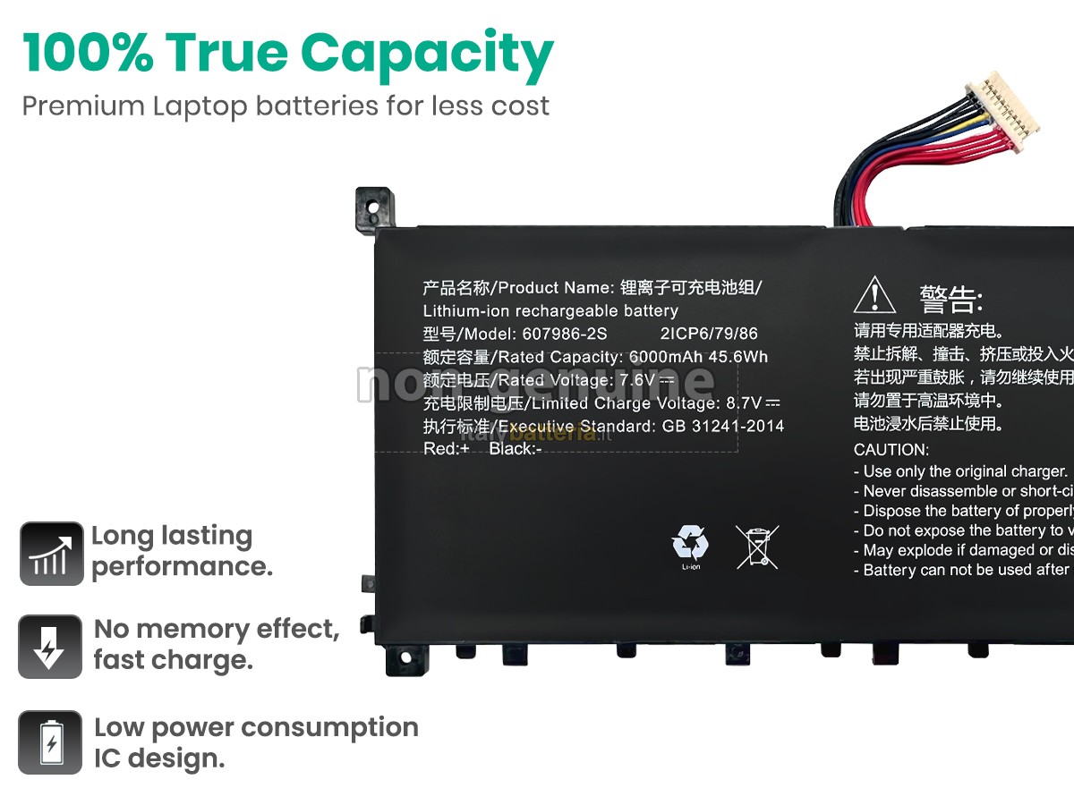 La batteria sostitutiva AolsteCell 607986-2S è progettata in scala 1:1 rispetto alla batteria originale, assicurando il 100% di compatibilità in termini di forma, dimensioni e prestazioni.
