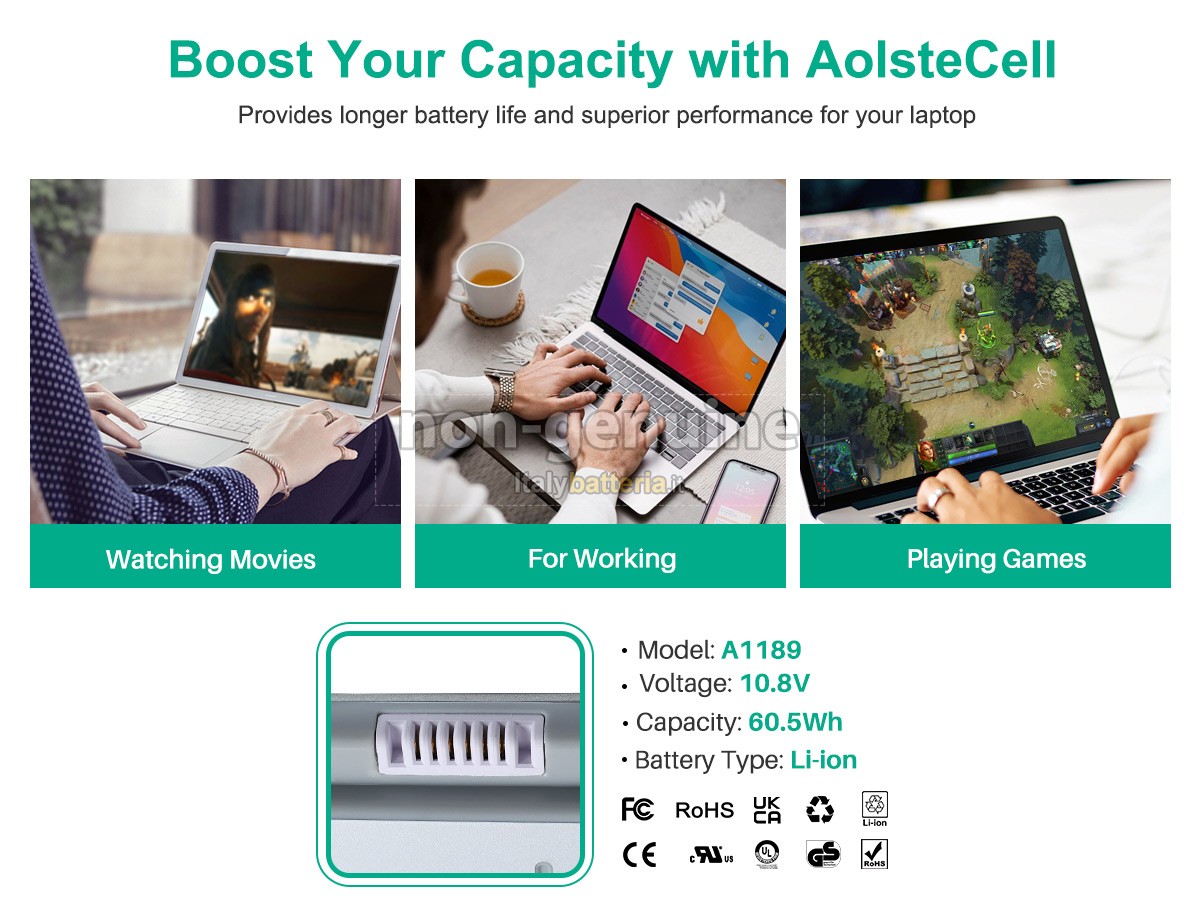 La batteria sostitutiva Apple A1151 è progettata in scala 1:1 rispetto alla batteria originale, assicurando il 100% di compatibilità in termini di forma, dimensioni e prestazioni.