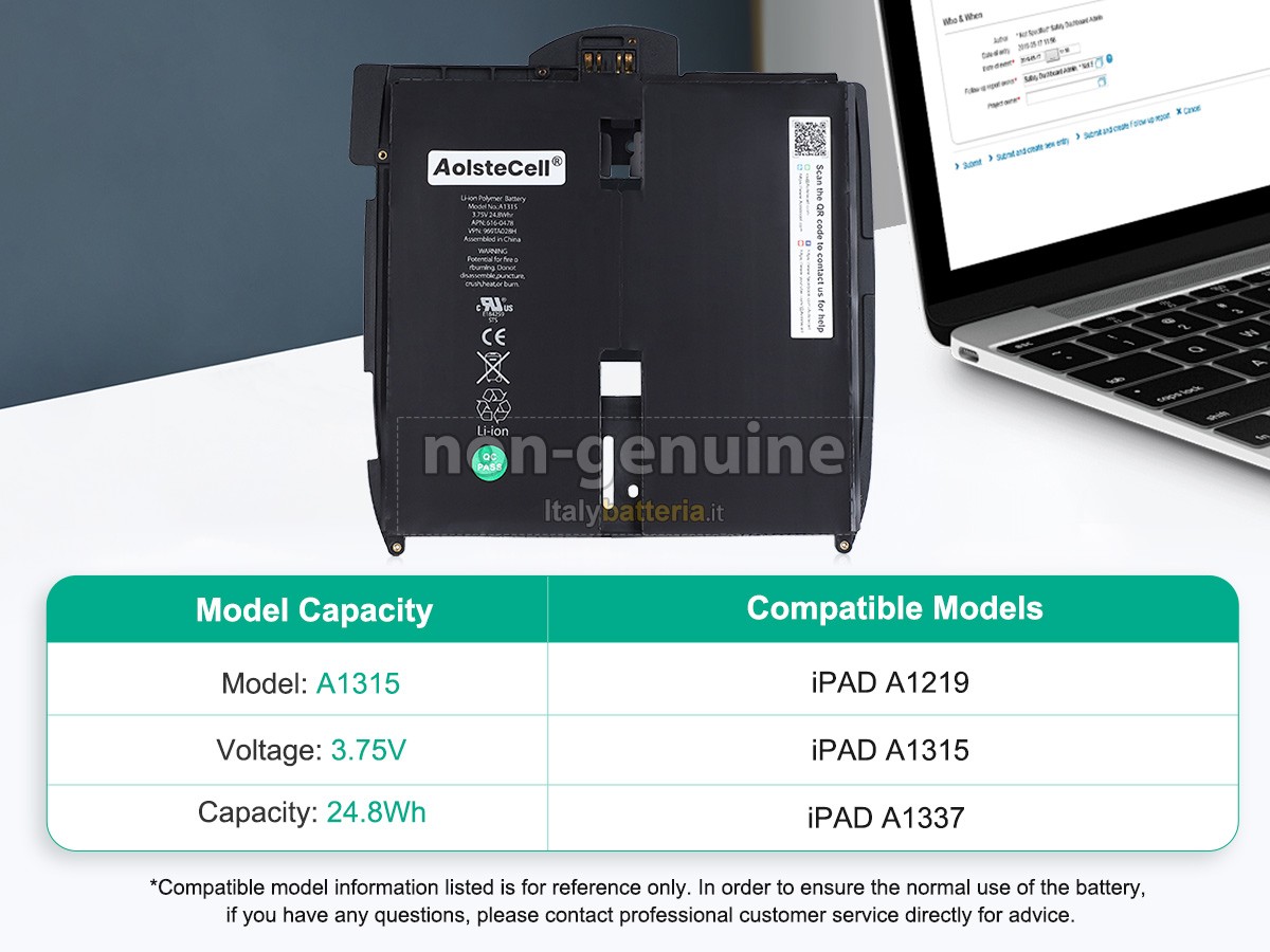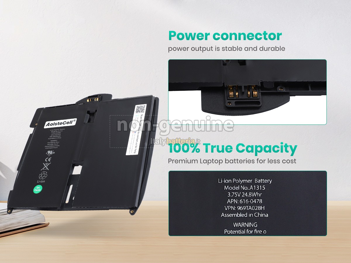 La batteria sostitutiva Apple A1315 è progettata in scala 1:1 rispetto alla batteria originale, assicurando il 100% di compatibilità in termini di forma, dimensioni e prestazioni.