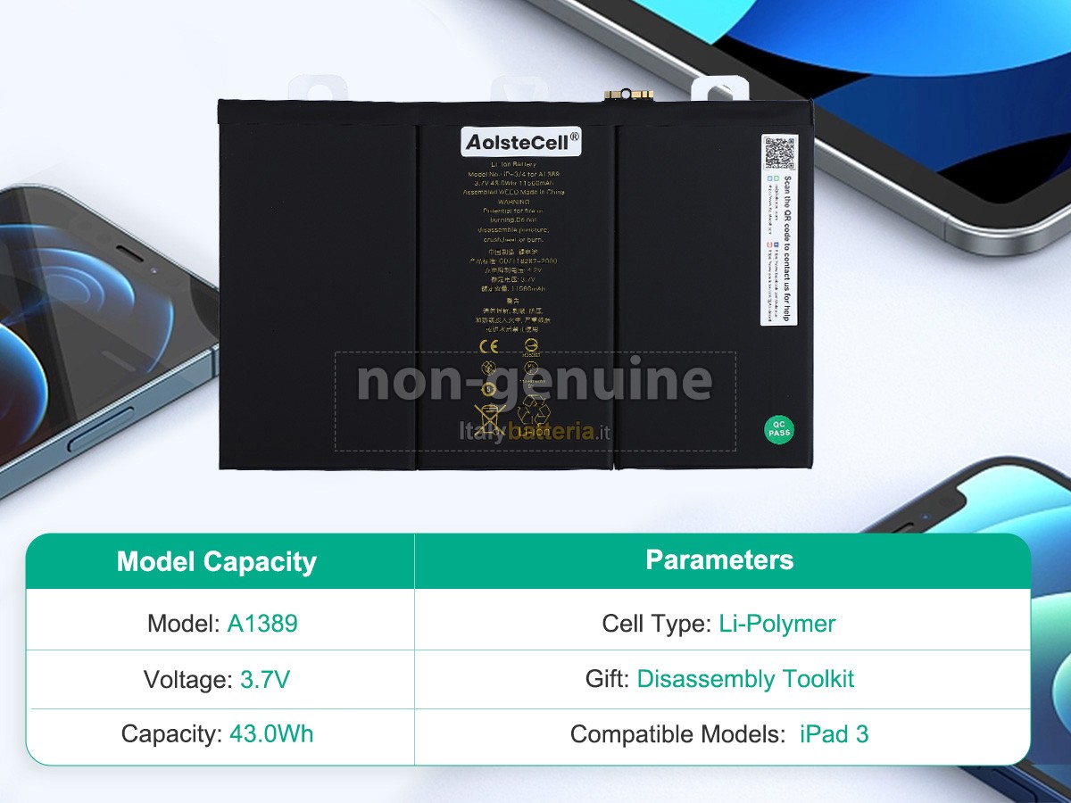 La batteria sostitutiva Apple A1403 è progettata in scala 1:1 rispetto alla batteria originale, assicurando il 100% di compatibilità in termini di forma, dimensioni e prestazioni.