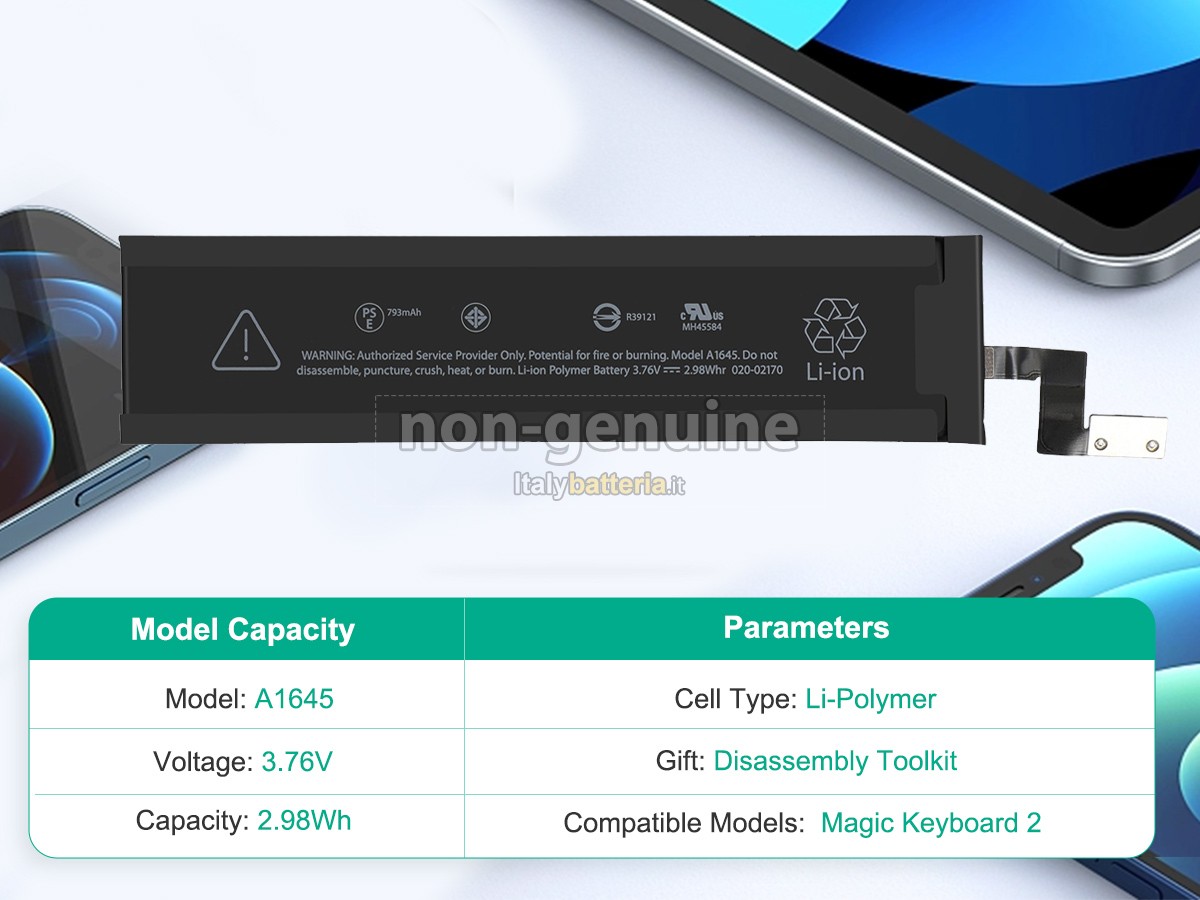 Con la copia 1: 1 in base alla dimensione originale della batteria originale, la batteria per Apple A1843 sostitutiva è compatibile al 100% con la batteria originale.