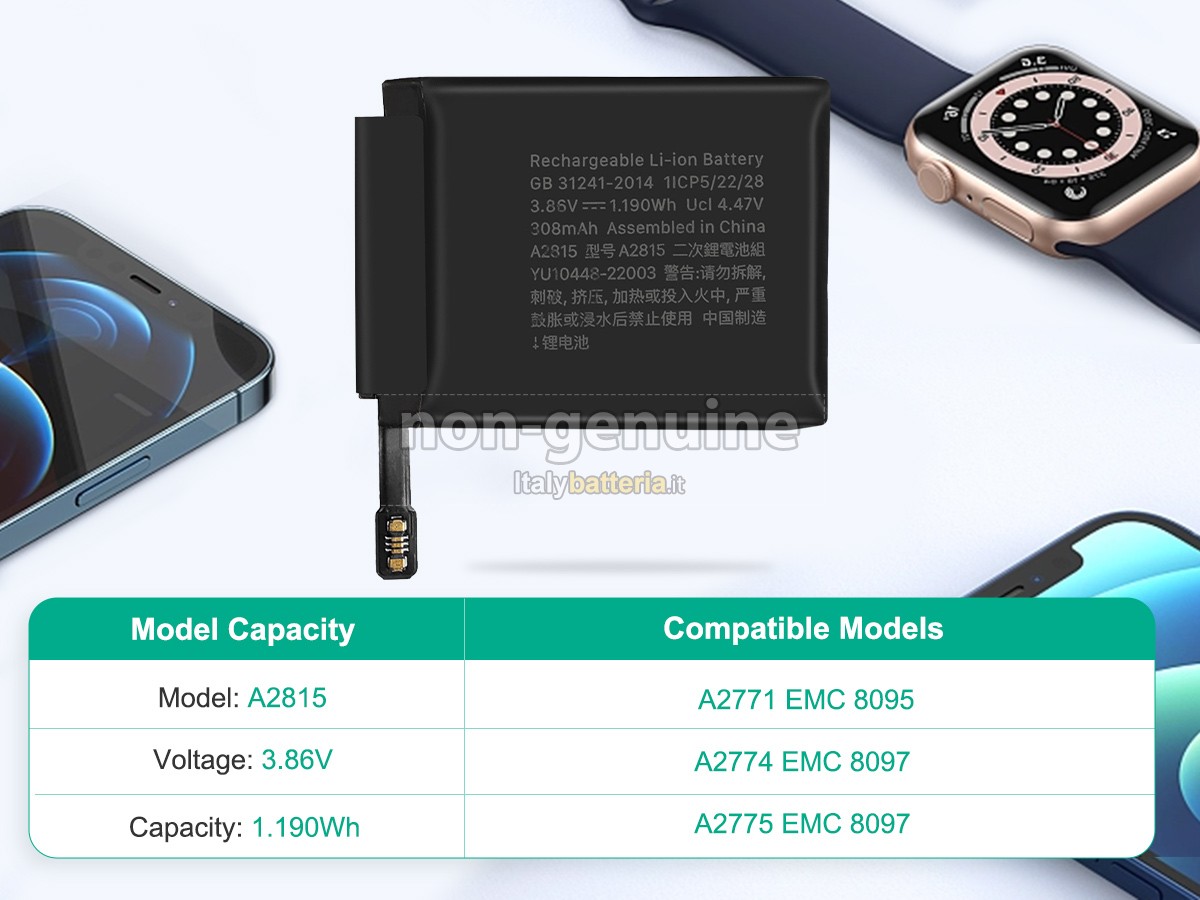 Con la copia 1: 1 in base alla dimensione originale della batteria originale, la batteria orologi Apple A2858 EMC 8097 sostitutiva è compatibile al 100% con la batteria originale.