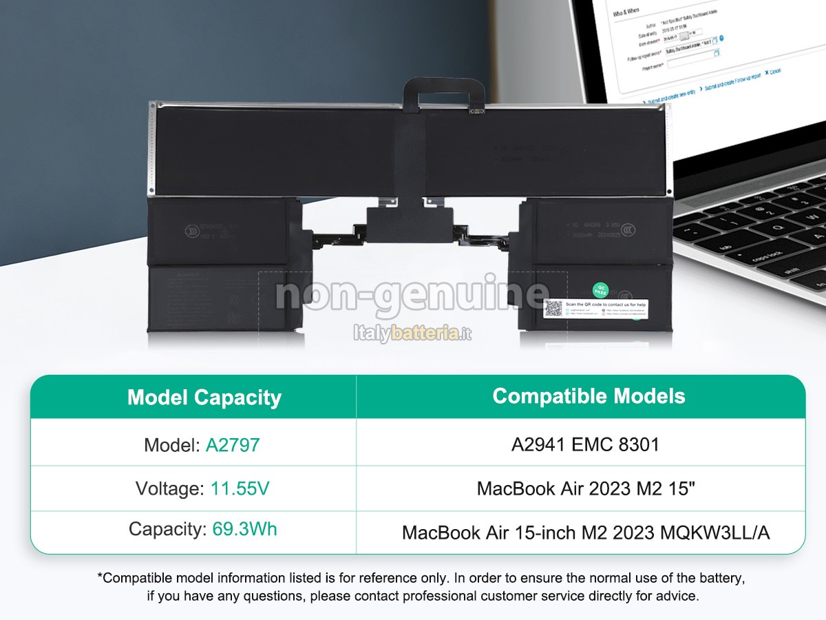La batteria sostitutiva Apple A2941 EMC 8301 è progettata in scala 1:1 rispetto alla batteria originale, assicurando il 100% di compatibilità in termini di forma, dimensioni e prestazioni.