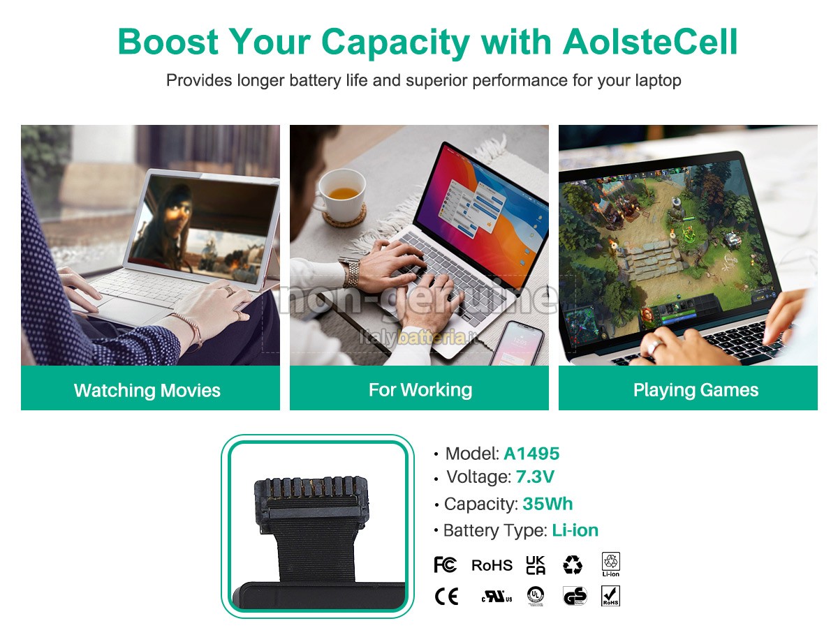 La batteria sostitutiva Apple MacBook Air 11.6 inch MD712LL/A è progettata in scala 1:1 rispetto alla batteria originale, assicurando il 100% di compatibilità in termini di forma, dimensioni e prestazioni.