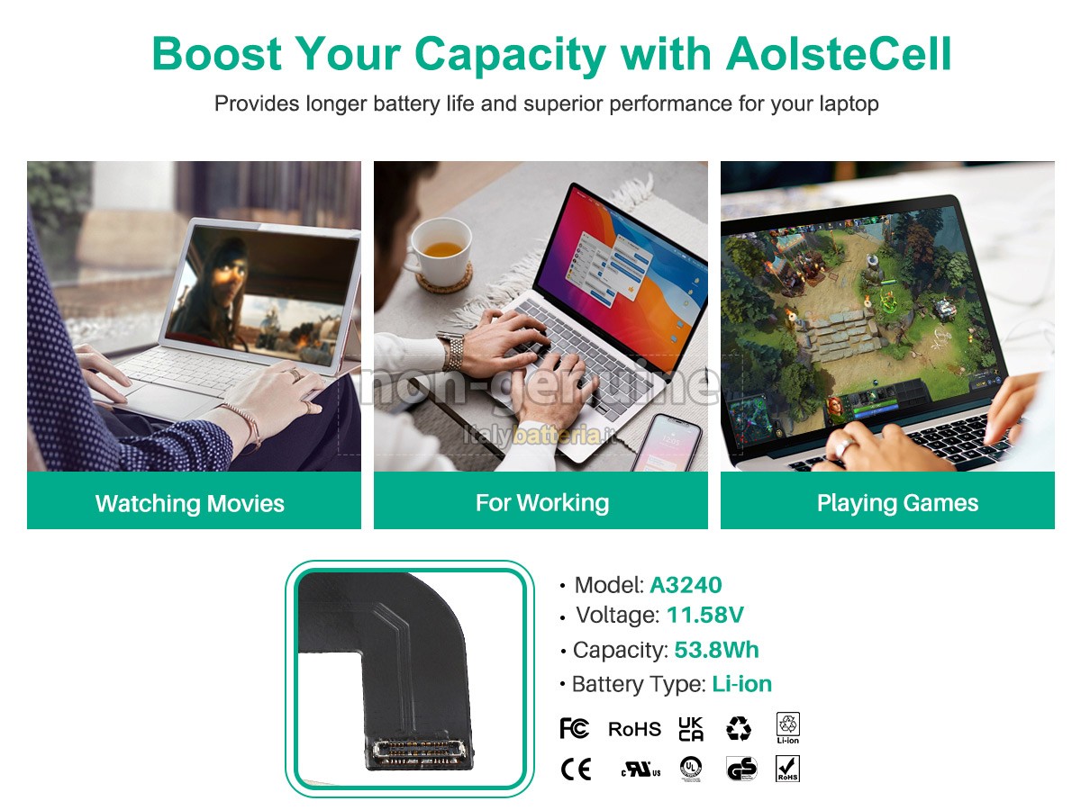 La batteria sostitutiva Apple MacBook Air 2025 M4 è progettata in scala 1:1 rispetto alla batteria originale, assicurando il 100% di compatibilità in termini di forma, dimensioni e prestazioni.