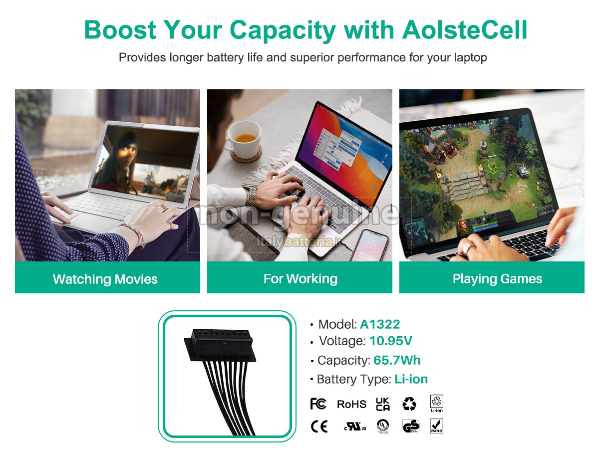 La batteria sostitutiva Apple MacBook Pro 13 inch MD101LL/A è progettata in scala 1:1 rispetto alla batteria originale, assicurando il 100% di compatibilità in termini di forma, dimensioni e prestazioni.