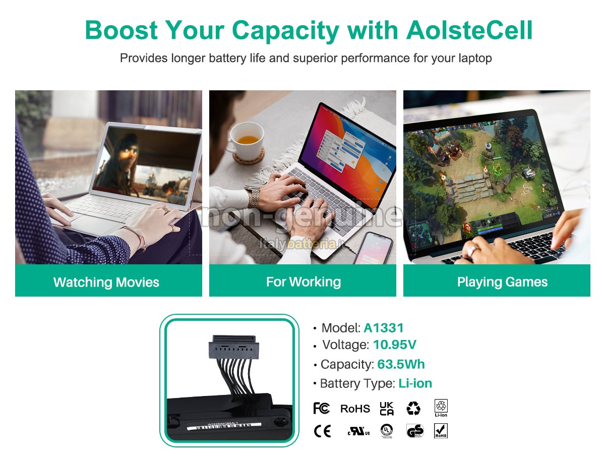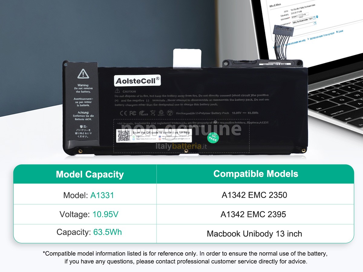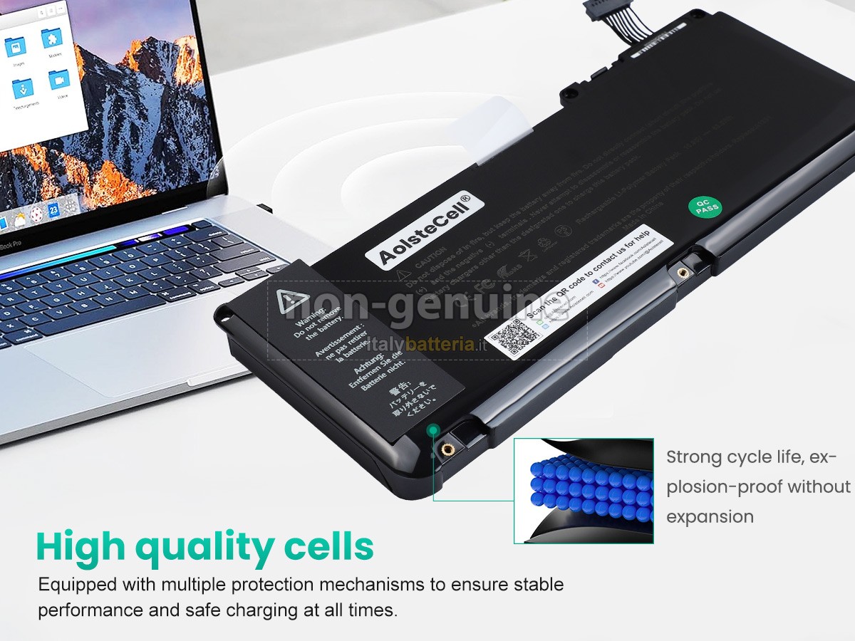 Ogni batteria per Apple MacBook Unibody 13 inch MC207LL/A viene sottoposta a severi test di sicurezza prima della spedizione, garantendo robustezza, durata e protezione da sovraccarichi, cortocircuiti e surriscaldamenti.