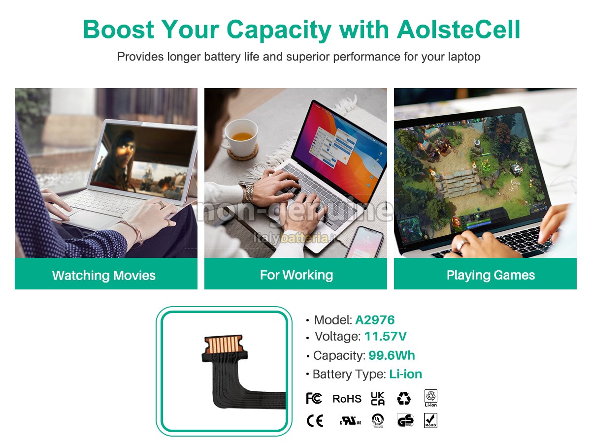 La batteria sostitutiva Apple MRW33LL/A è progettata in scala 1:1 rispetto alla batteria originale, assicurando il 100% di compatibilità in termini di forma, dimensioni e prestazioni.