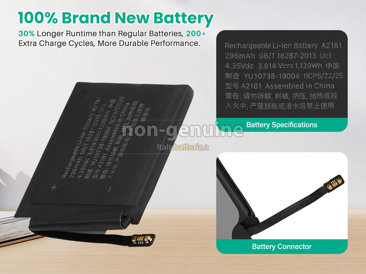 Con la copia 1: 1 in base alla dimensione originale della batteria originale, la batteria orologi Apple WATCH Series 5 HERMES GPS 44MM sostitutiva è compatibile al 100% con la batteria originale.