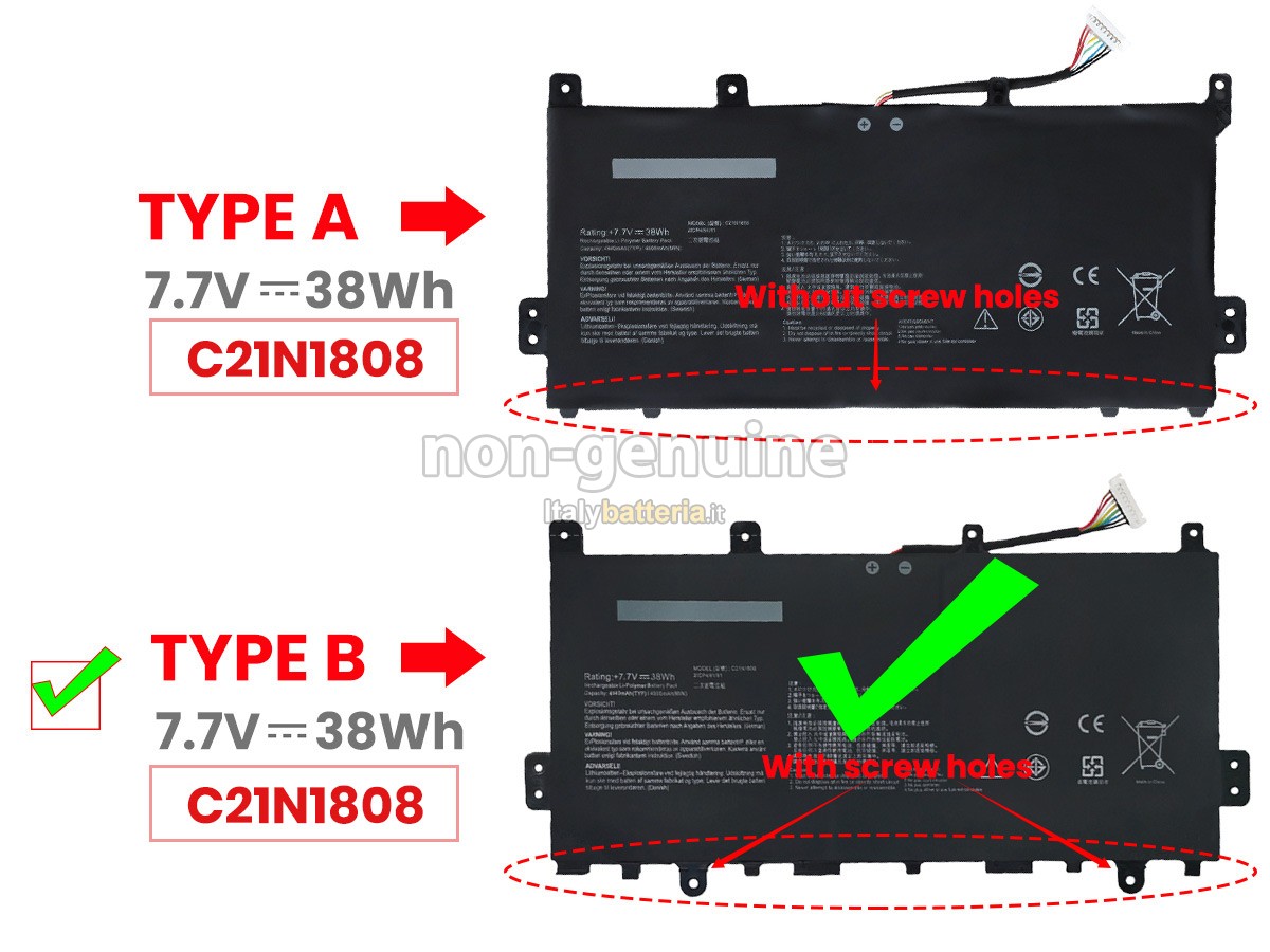 Con la copia 1: 1 in base alla dimensione originale della batteria originale, la batteria Asus C21N1808 sostitutiva è compatibile al 100% con la batteria originale.