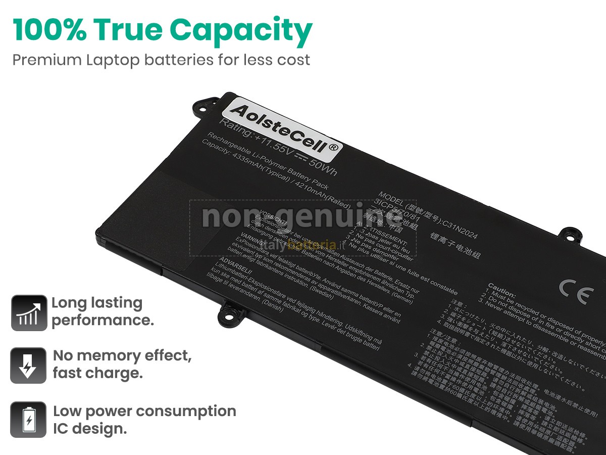 Con la copia 1: 1 in base alla dimensione originale della batteria originale, la batteria Asus C31N2019 sostitutiva è compatibile al 100% con la batteria originale.