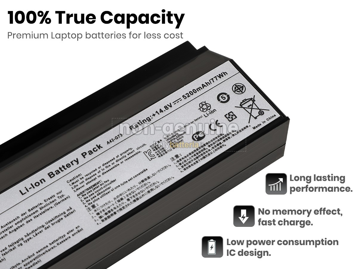 Con la copia 1: 1 in base alla dimensione originale della batteria originale, la batteria Asus G73-52 sostitutiva è compatibile al 100% con la batteria originale.