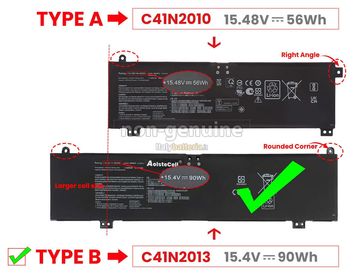 Con la copia 1: 1 in base alla dimensione originale della batteria originale, la batteria Asus TUF GAMING A15 FA507RE-HN019W sostitutiva è compatibile al 100% con la batteria originale.