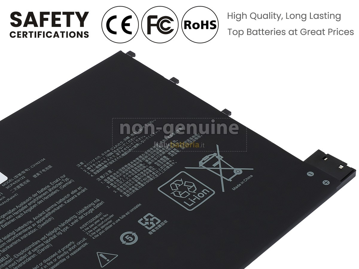 Con la copia 1: 1 in base alla dimensione originale della batteria originale, la batteria Asus VivoBook 13 SLATE OLED T3300KA-OLED62 sostitutiva è compatibile al 100% con la batteria originale.