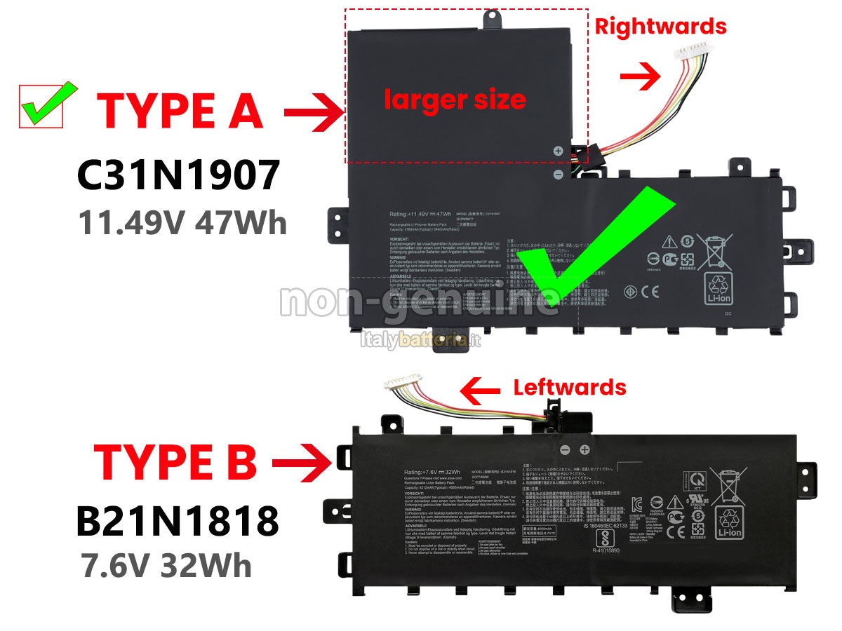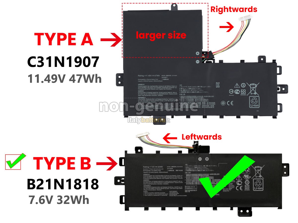 Con la copia 1: 1 in base alla dimensione originale della batteria originale, la batteria Asus VivoBook 17 P1701FB sostitutiva è compatibile al 100% con la batteria originale.