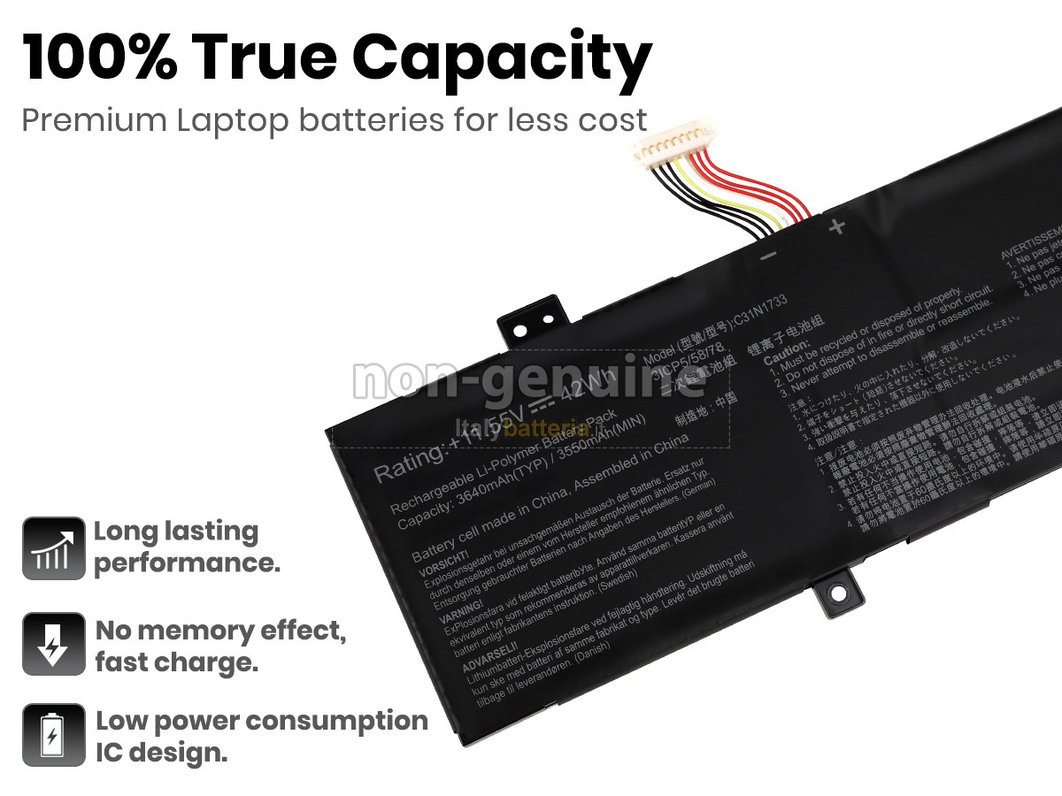 Con la copia 1: 1 in base alla dimensione originale della batteria originale, la batteria Asus VivoBook Flip 14 TP412UA sostitutiva è compatibile al 100% con la batteria originale.