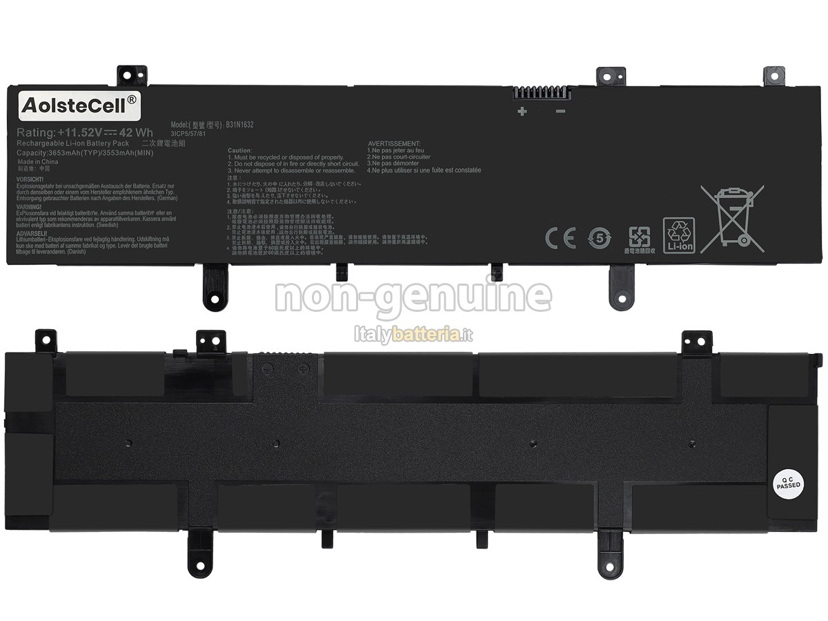 Con la copia 1: 1 in base alla dimensione originale della batteria originale, la batteria Asus VivoBook X405UR sostitutiva è compatibile al 100% con la batteria originale.