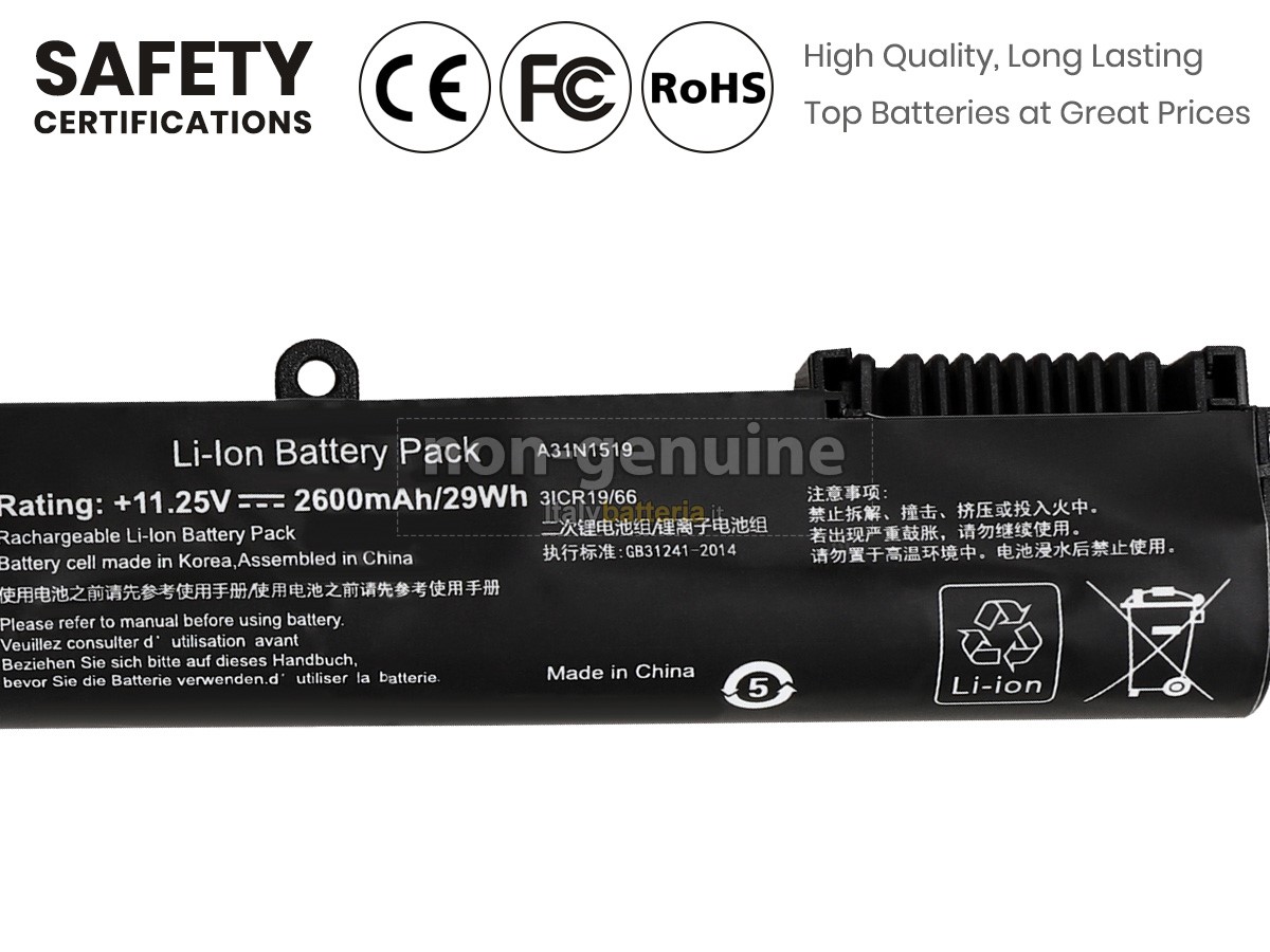 Con la copia 1: 1 in base alla dimensione originale della batteria originale, la batteria Asus X540LJ-XX001T sostitutiva è compatibile al 100% con la batteria originale.