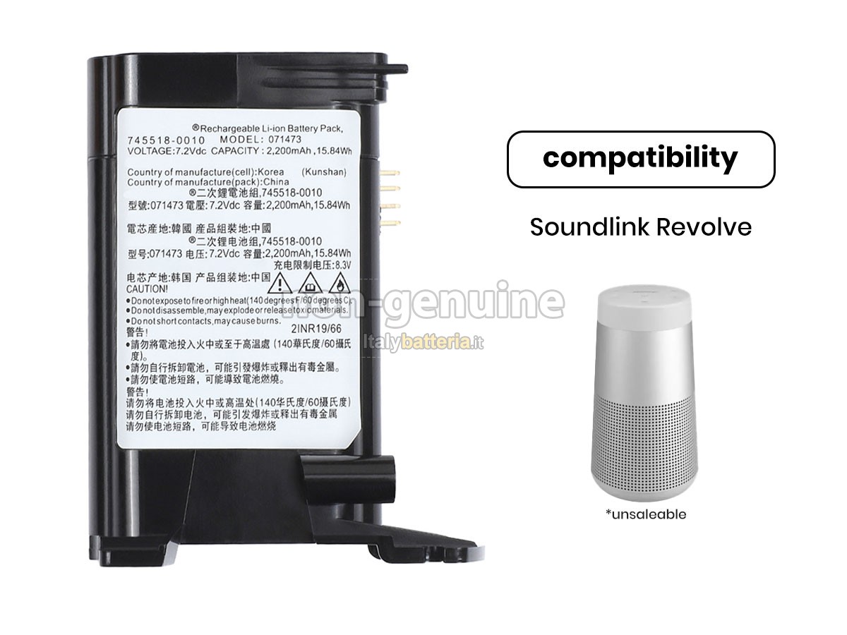Con la copia 1: 1 in base alla dimensione originale della batteria originale, la batteria dell'altoparlante Bose 071473 sostitutiva è compatibile al 100% con la batteria originale.