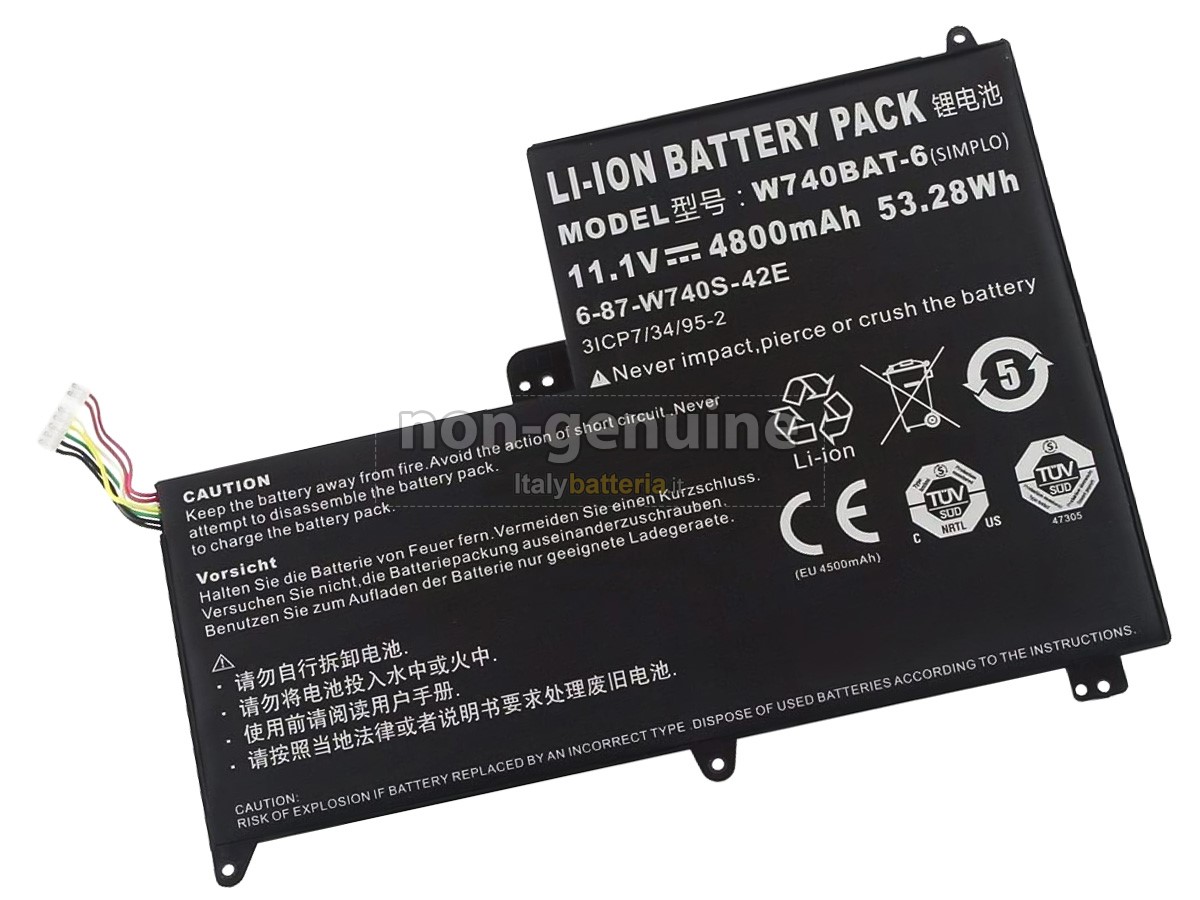 Con la copia 1: 1 in base alla dimensione originale della batteria originale, la batteria Clevo 6-87-W740S-42E sostitutiva è compatibile al 100% con la batteria originale.
