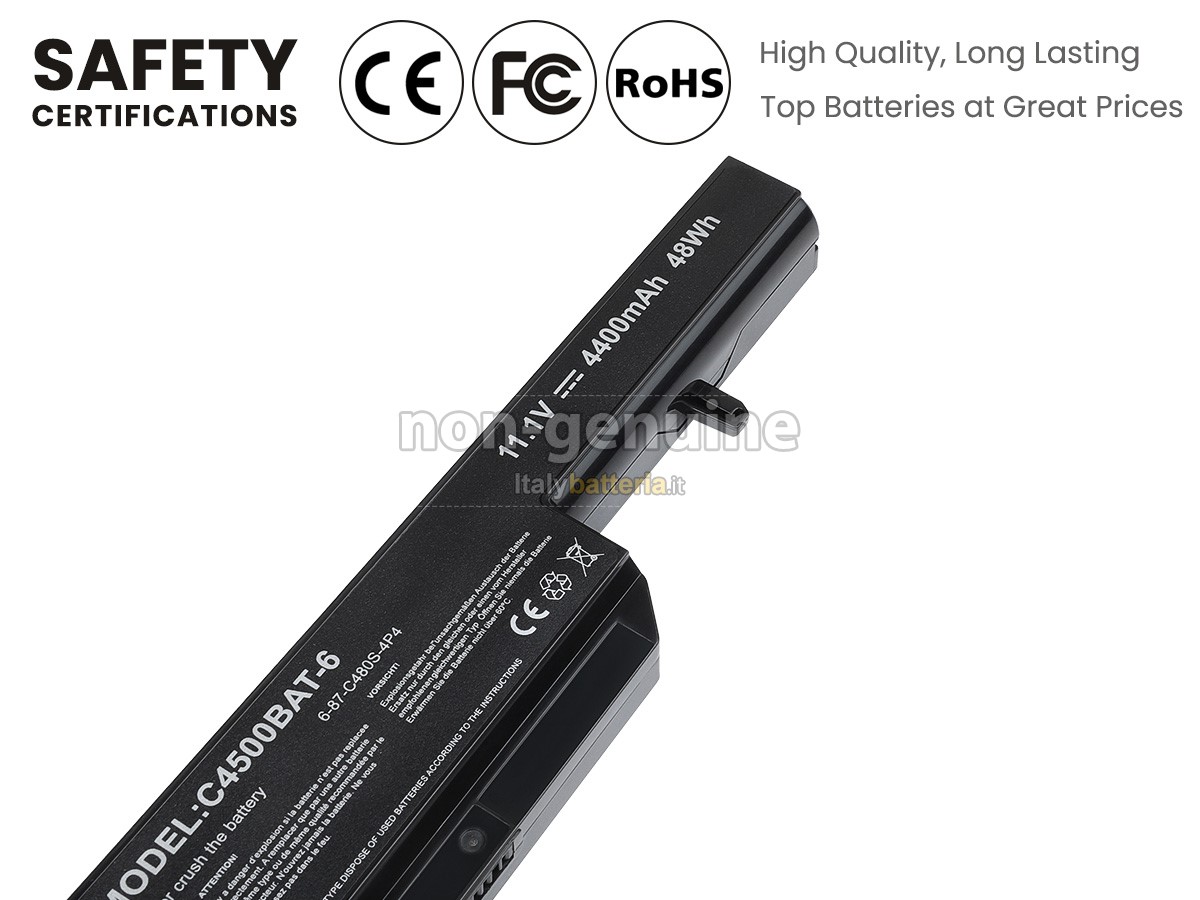 Con la copia 1: 1 in base alla dimensione originale della batteria originale, la batteria Clevo C5500Q sostitutiva è compatibile al 100% con la batteria originale.