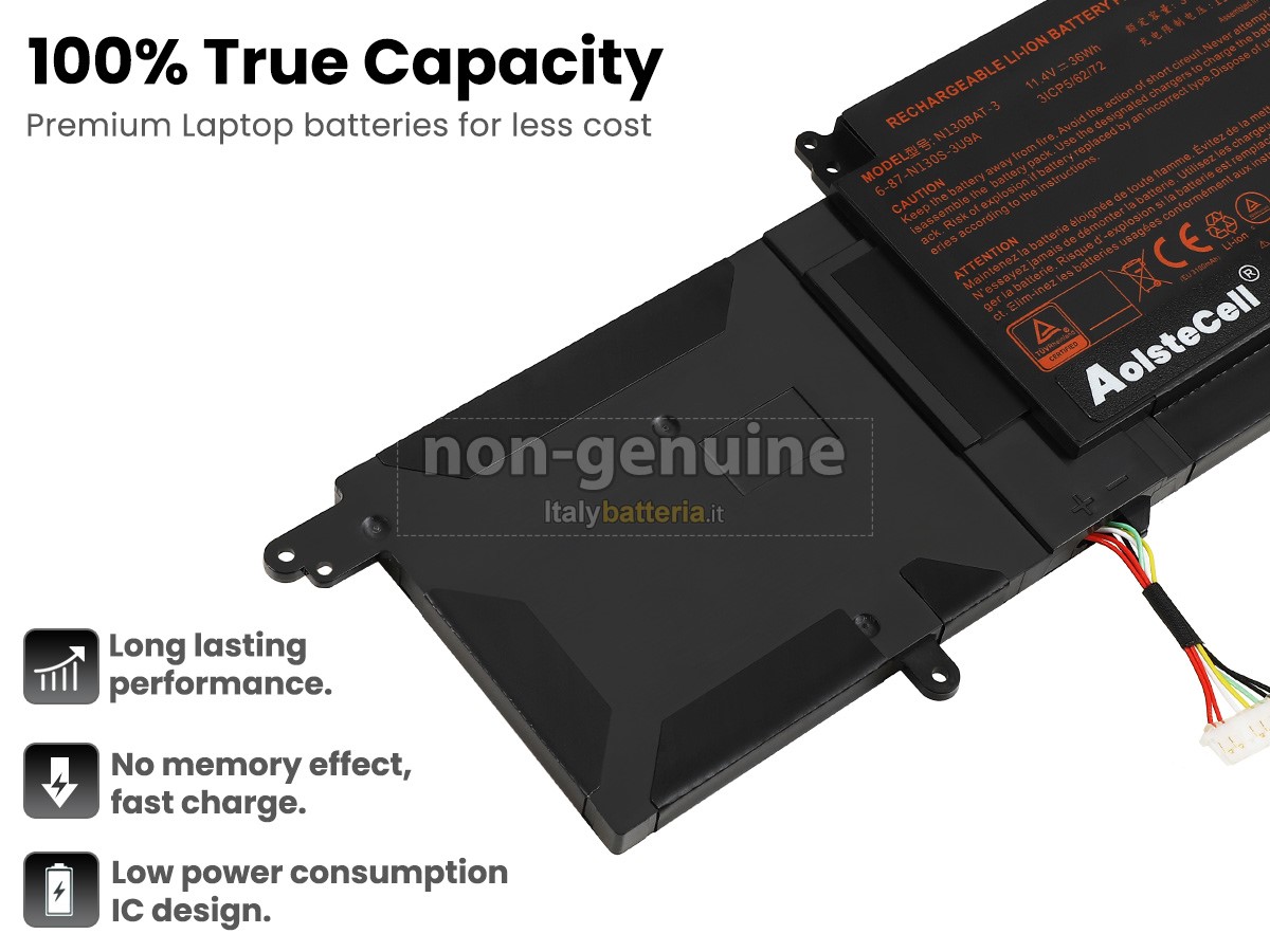 Con la copia 1: 1 in base alla dimensione originale della batteria originale, la batteria Clevo N130BAT-3 sostitutiva è compatibile al 100% con la batteria originale.