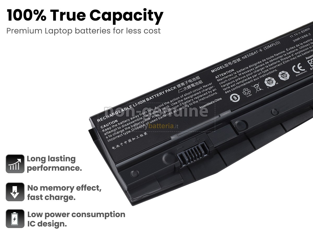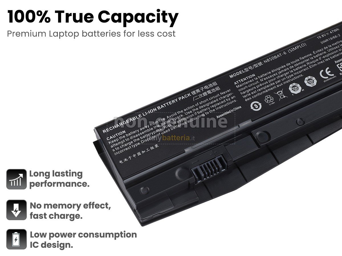 Con la copia 1: 1 in base alla dimensione originale della batteria originale, la batteria Clevo N850BAT-6 sostitutiva è compatibile al 100% con la batteria originale.