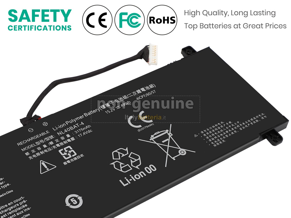 Con la copia 1: 1 in base alla dimensione originale della batteria originale, la batteria Clevo NL50GU sostitutiva è compatibile al 100% con la batteria originale.