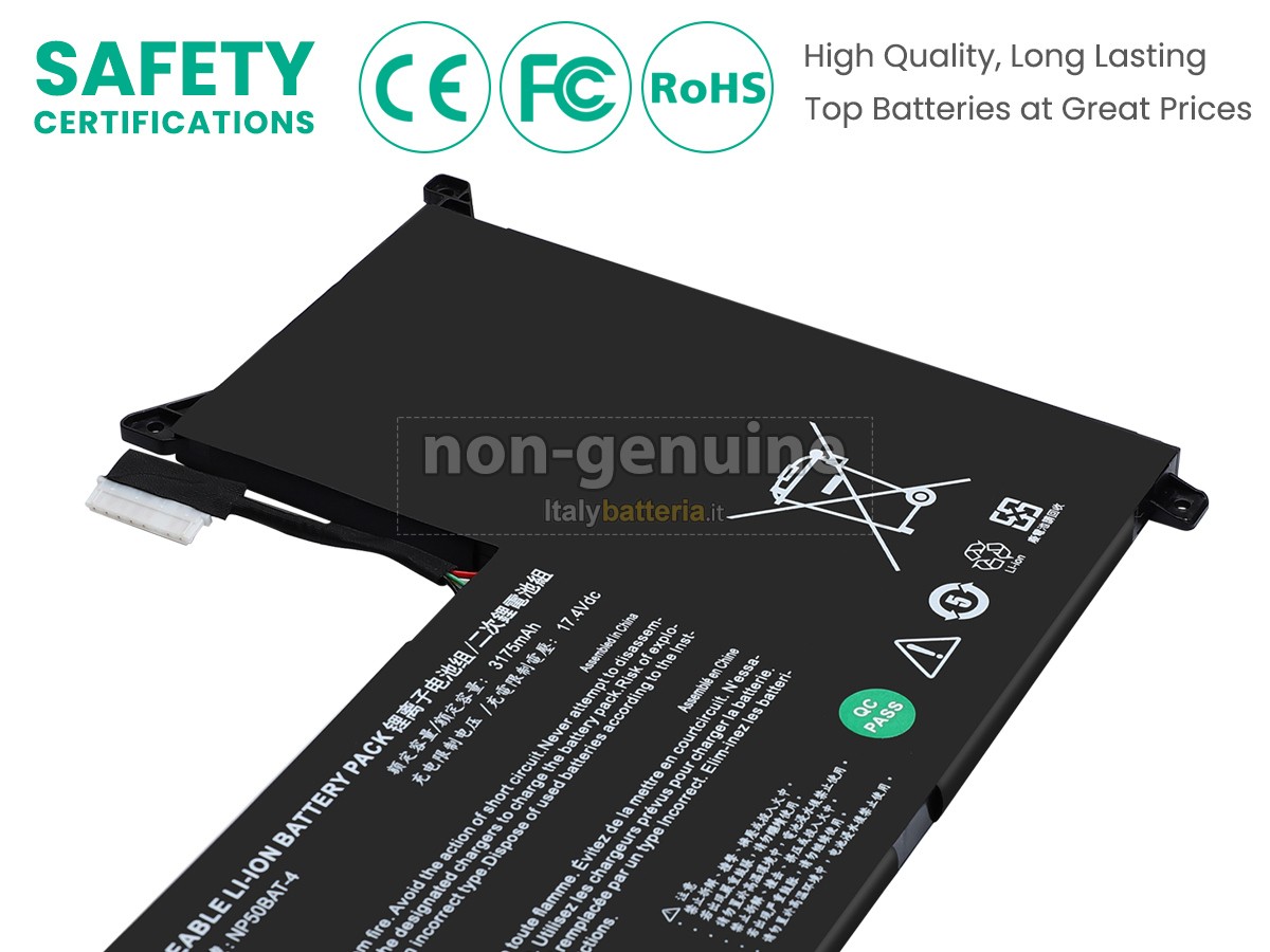 La batteria sostitutiva Clevo NP50PNK è progettata in scala 1:1 rispetto alla batteria originale, assicurando il 100% di compatibilità in termini di forma, dimensioni e prestazioni.