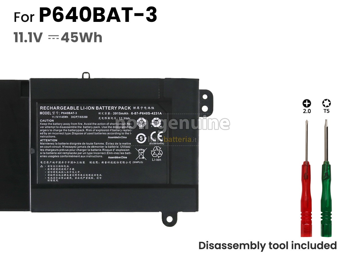 Con la copia 1: 1 in base alla dimensione originale della batteria originale, la batteria Clevo P640BAT-3 sostitutiva è compatibile al 100% con la batteria originale.