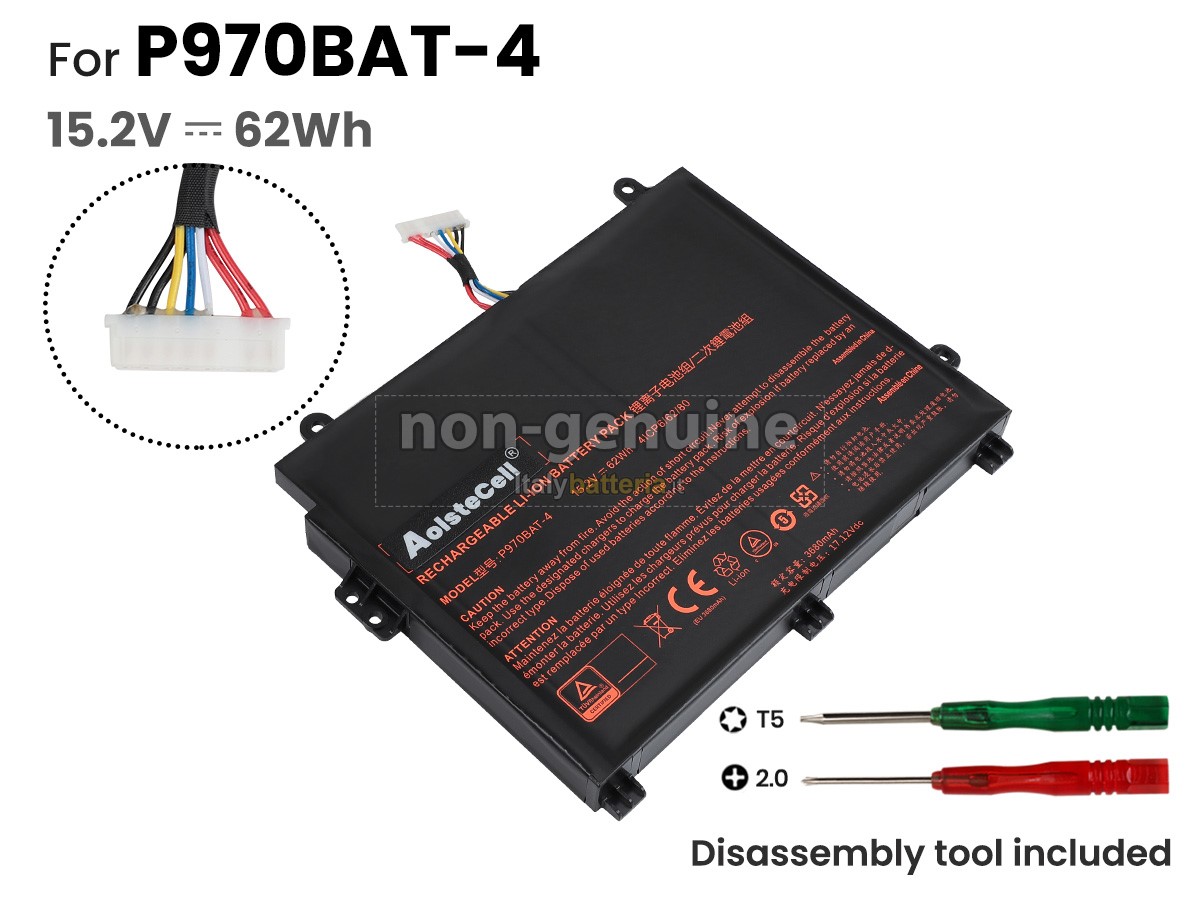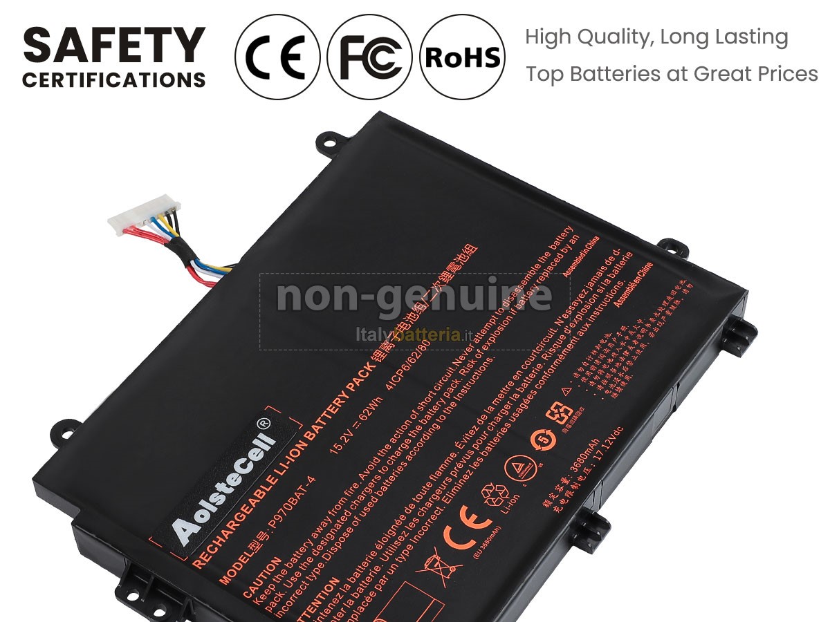 Con la copia 1: 1 in base alla dimensione originale della batteria originale, la batteria Clevo P950RF sostitutiva è compatibile al 100% con la batteria originale.