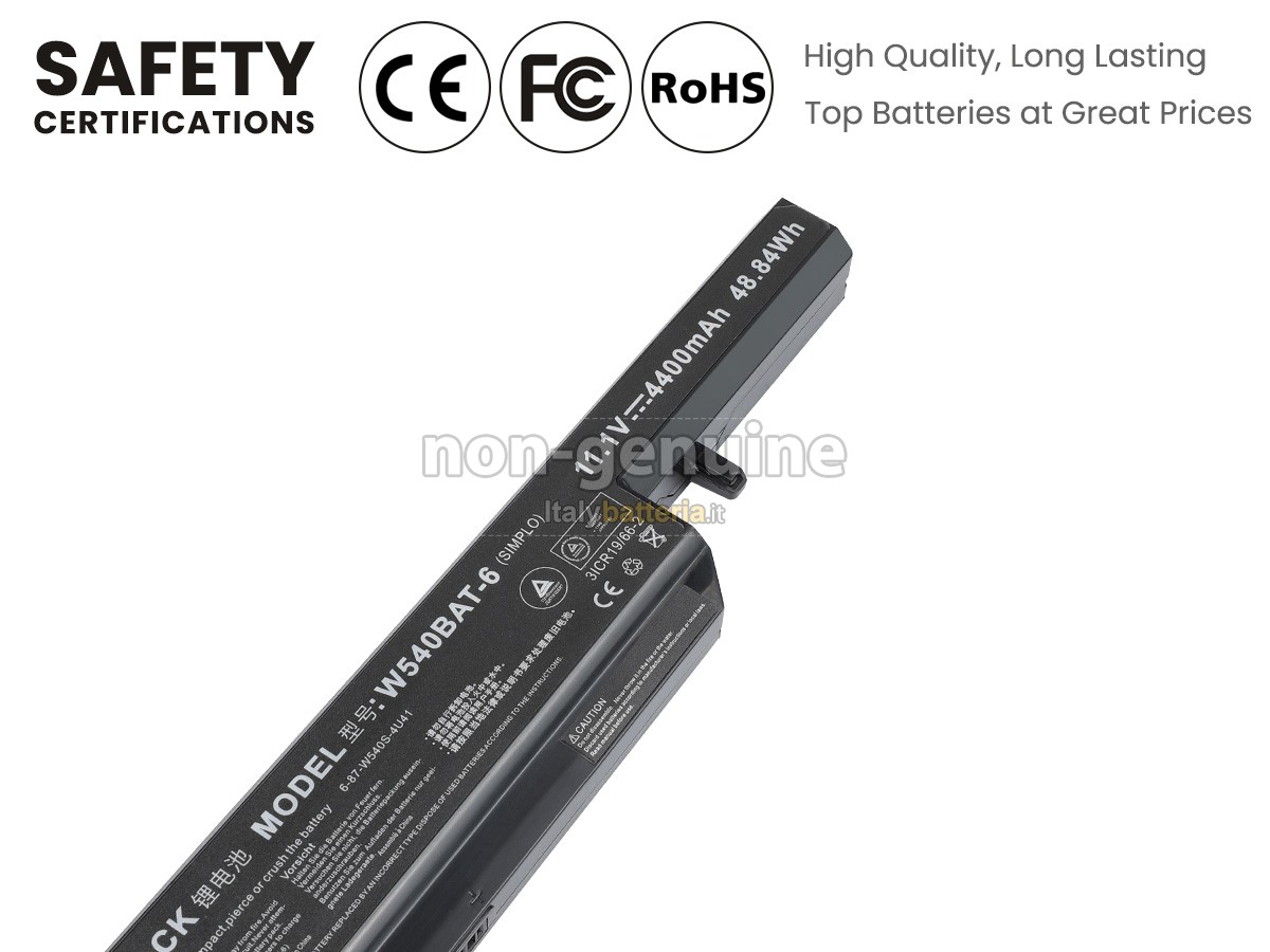 Con la copia 1: 1 in base alla dimensione originale della batteria originale, la batteria Clevo W55EU sostitutiva è compatibile al 100% con la batteria originale.