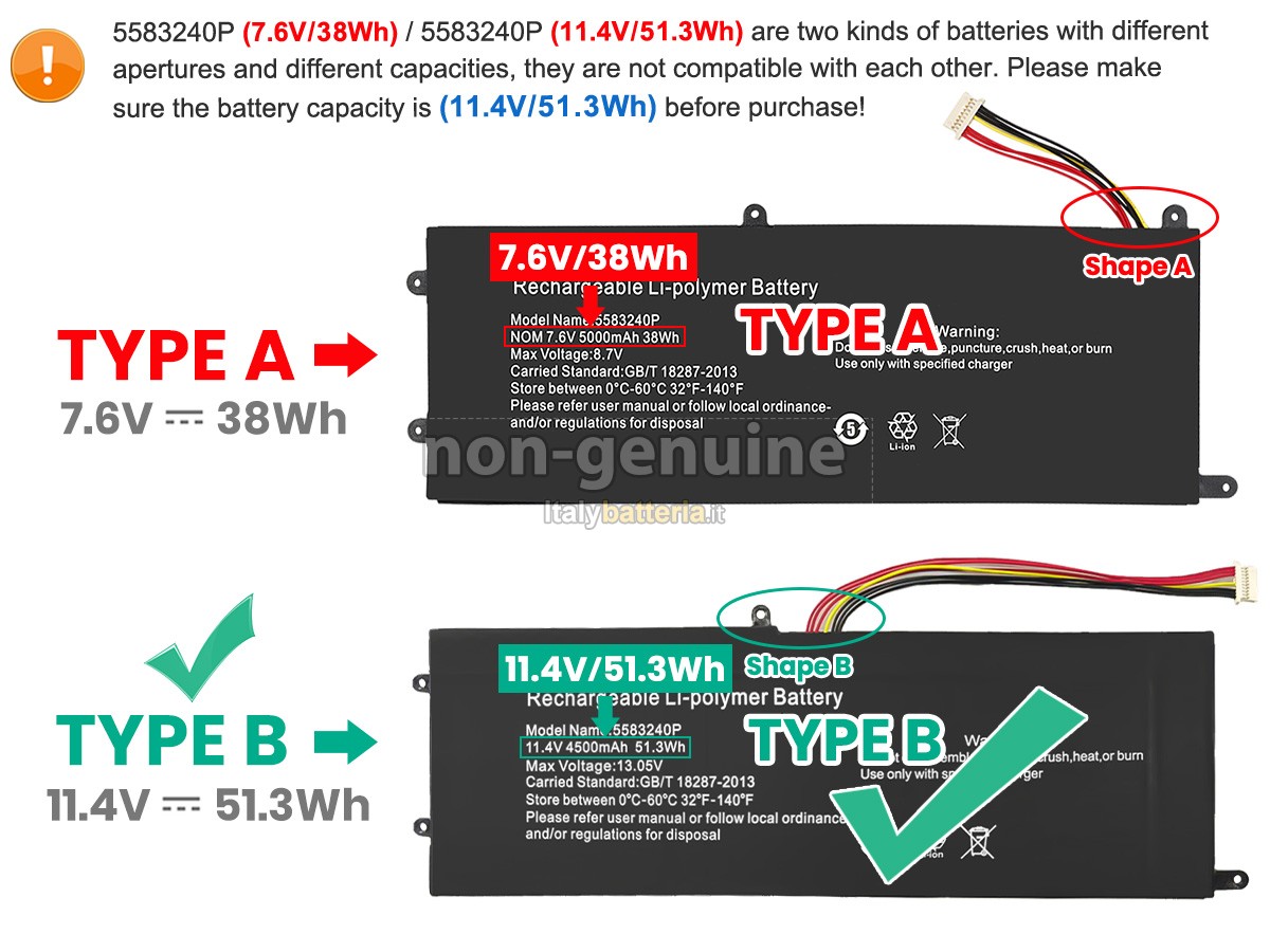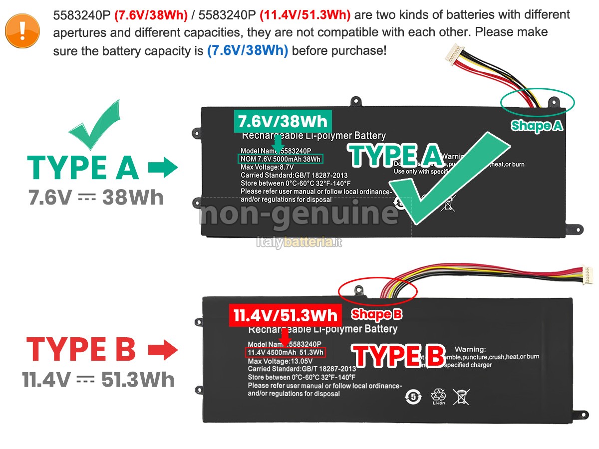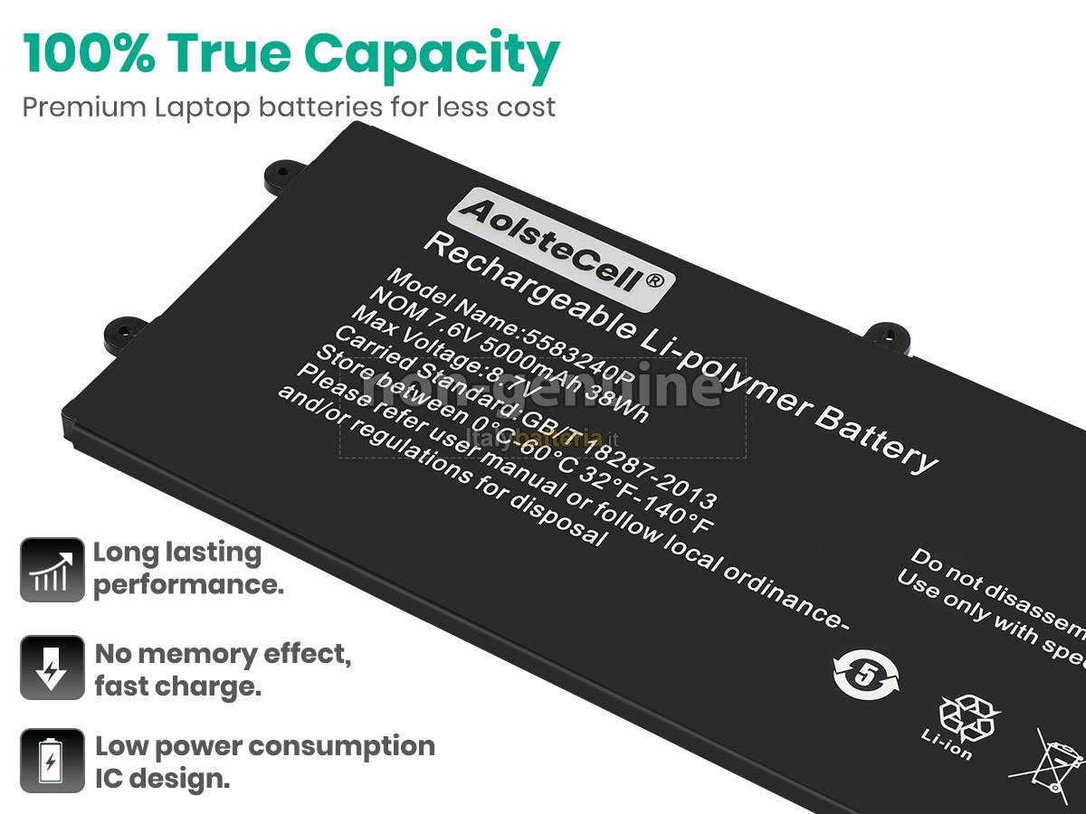 Con la copia 1: 1 in base alla dimensione originale della batteria originale, la batteria Cooyes 5583240P sostitutiva è compatibile al 100% con la batteria originale.