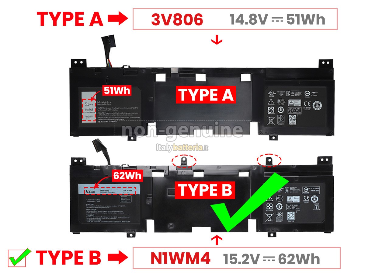 Con la copia 1: 1 in base alla dimensione originale della batteria originale, la batteria Dell Alienware 13 R1 sostitutiva è compatibile al 100% con la batteria originale.